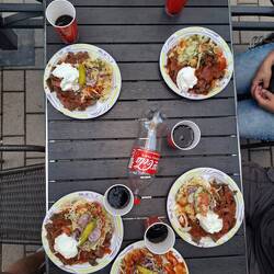 Nach eingenommenem Essen suchen wir uns mit Team #113 einen Spot für die Nacht. Ist noch ne Stunde Fahrt, naja, dafür morgen dann ne Stunde weniger.Lue lisää