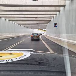 Den 7km Tunnel das zweite mal durchfahren. Auf dem Weg ein Team in einem T4 getroffen, der am Tunnelausgang einen kapitalen Motorschaden erlitt. Zahnriemenriss bei der 11% Steigung, das Tageslicht imLue lisää