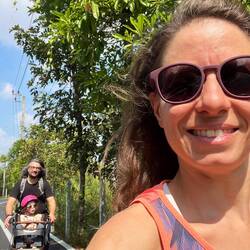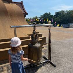 Start in den Tag mit 1 Std. Spinning Thai Style, also 90% im Stehen und dazu hektische Armbewegungen🥵. Danach Tempelbesichtigung des Wat Huay Mongkol. Fiona hat dort gerne die Glocken geläutet undLæs mere