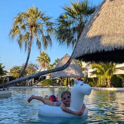 Heute haben wir nachdem ich mit einem Obstkorb geweckt wurde mal einen reinen Badetag eingelegt: Pool->Meer-> Pool-> Sonnenuntergang vom Jacuzzi aus. Dazwischen gab es lecker Mittagessen (wir liebenLæs mere