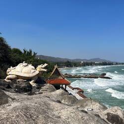 Heute ging es bereits um 7:30 Uhr los zum Khao Sam Roi Yot Nationalpark. Dort sind wir ein paar Stunden gewandert zwischen Strand, Steilküste, tollen Höhlen und Äffchen.