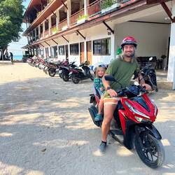 Da Fiona im Urlaub seltsamerweise kein Problem damit hat früh aufzustehen, sondern um 6 Uhr neben unserem Bett steht, sind wir bereits am Vormittag mit dem Roller zum Strand Khao Tao gefahren. ManRead more