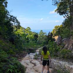 An unserem letzten Tag auf Koh Tao gab es nach einem ausgiebigen Frühstück nochmal eine kurze Wanderung mit etwas Gekraxel. Dabei haben wir im Baum eine Riesenspinne entdeckt.