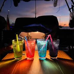 Nach einigen vergeblichen Versuchen einen Liegeplatz im Hafen zu bekommen, geht es vom Anker aus per Dinghi in die Stadt. Umso besser, sparen wir uns die Gebühren und können stattdessen einen Cocktail trinken. Das Einklarieren ist dank SailClear schnell erledigt und auch das Immigration Questionaire ist irgendwann ausgefüllt. Also kann der Party nichts mehr im Wege stehen außer einem Abendessen. Jonas und ich träumen seit Tagen von Lasagne - schnell ist diese im Ofen verschwunden und kurz darauf machen wir uns mit einer Lasagne auf Hitzeunterlagen, Handtuch und Kissen im Dinghi auf den Weg zu den LeeLoos. Wenn man schon nebeneinander liegt, kann man ja auch zusammen essen. In freudiger Erwartung auf den bevorstehenden Landgang, vergeht das Abendessen wie im Flug. Und kurze Zeit später sind wir bereits auf dem Weg zu dem Standort, den mein Handy mir vorgibt. Schon von weitem können wir den Lärm hören und die Grills riechen. Fröhlich brutzelt Fleisch und Fisch am Straßenrand. Man hört das Gelächter der Menschen. Ausgelassen unterhalten sich jung und alt, schwarz und weiß, Ausländer und Einheimische, Segler und Landratten miteinander. Auch die ein oder andere Cannabis Fahne weht durch das Fest. Wir lehnen dankend ab und genießen lieber die Musik aus der Lautsprecherburg in der Mitte der Feier. Der DJ versteht sich darauf, alle Menschen anzusprechen und schon bald herrscht dichtes Gedränge. Wir tanzen, wir grölen und haben einen tollen Abend, den wir so schnell nicht wir vergessen werden!もっと詳しく