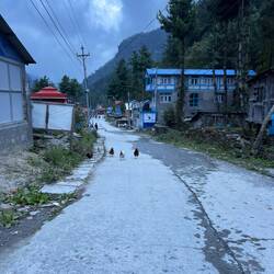 Last trekking day and we were lucky as the festival „Tihar“ was being celebrated, which meant that there was another dance session in the evening in Koto in the Teahouse.