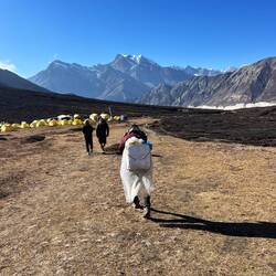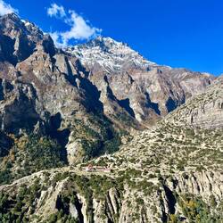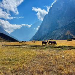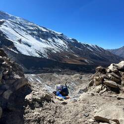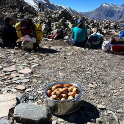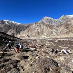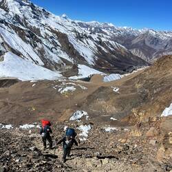 Rest day and acclimatization hike in and from Phu Gaun (4.080m) up to a beautiful view point (4.750m) above Phu Gaun where we got the first views to Himlung.