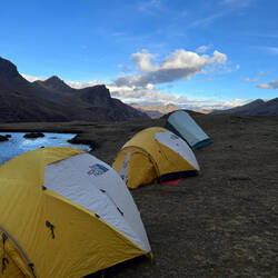 Luckily, the sun is out ☀️ Erik, our guide, woke us up at 5.50am, approximately 1 degree, we opened our tent and were surprised by a beautiful sunrise. After breakfast it was time to start hiking.Læs mere