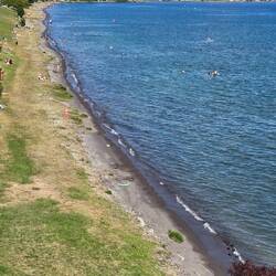 The stones and sand at Napier beach are black due to their volcanic origin and high iron content. These materials, known as titanomagnetite, are carried from volcanic regions (like the Taupo VolcanicRead more