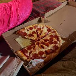 Der Abend endete mit Pizza im Hotelbett und einer heißen Dusche. Deutlich angenehmer als im Zelt bei diesem Wetter!