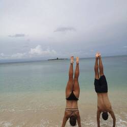 An jedem Strand von Marie-Galante gab es einen Handstand.