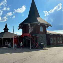 hiä auso wohnt dr Samichlous mit sir Frou, sinä Elfen und Rentier😄Bis minus 51 Grad hei si hiä im Winter🥶Dä het lang mit üs brichtet, är het itz wenig Bsuech im Summer😁