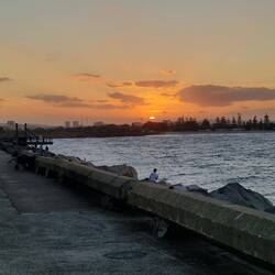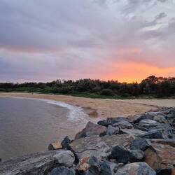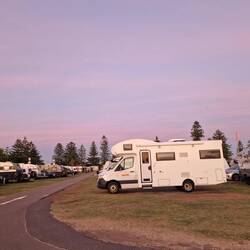 Sonnenaufgang in Downunder; Campingplatz direkt am Pazifik. 👍