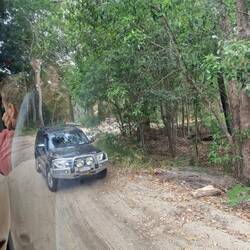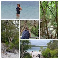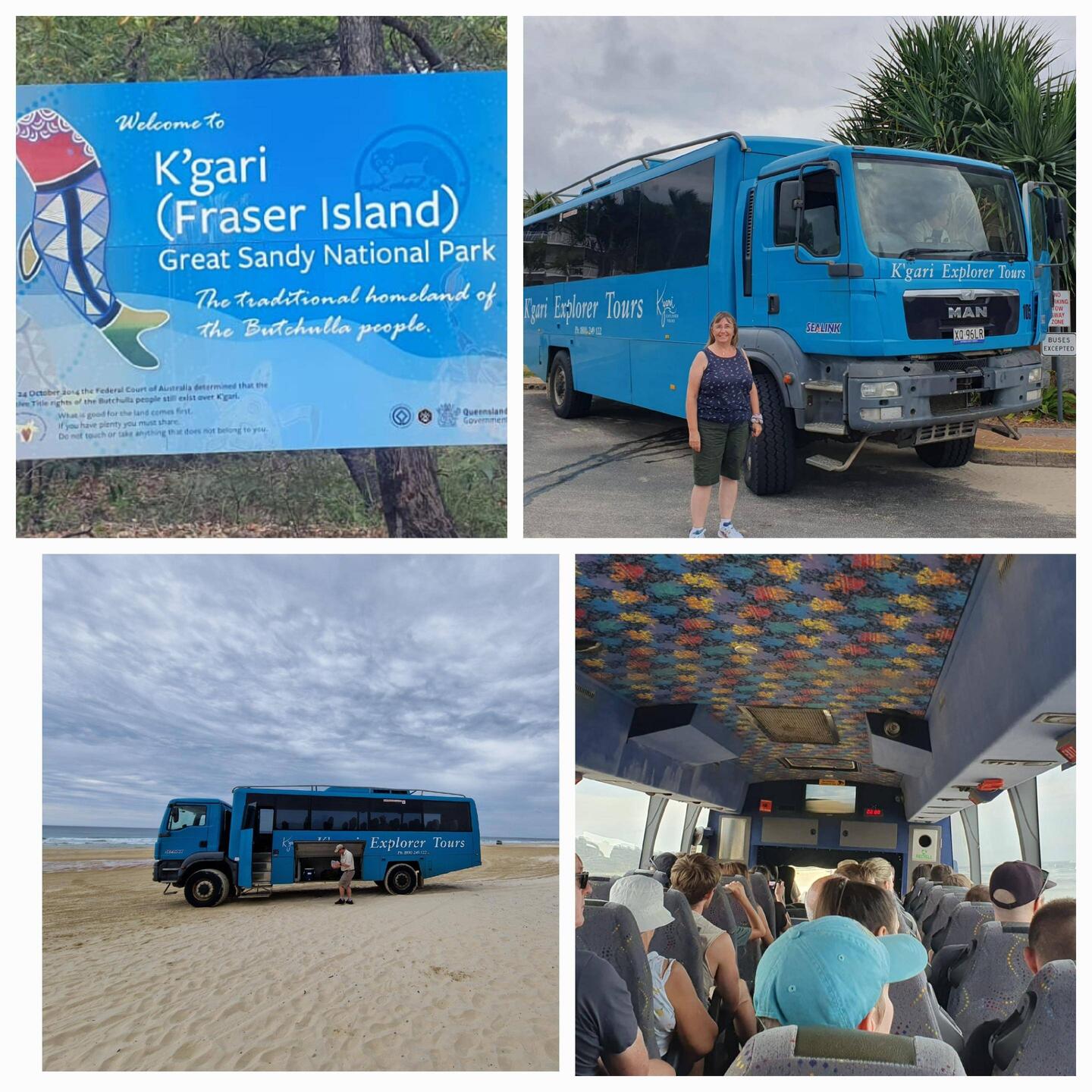 Ausflug nach Fraser Island mit Offroad Bus. Auf der weltgrössen Sandinsel gibt es keine geteerten Strassen nur Sandpisten. Ich fühle mich, als ob ich einen Tag Achterbahn gefahren wäre.