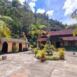There is not much left of La Catedral, the self made jail her designed and built for himself as a negotiation with the government at the time to prevent extradition to the USA. But as a f-u to the US authorities, taking a photo of himself wearing a Russian hat (because the cold war had just happened, a very expensive pull over he purchased in Italy a month before the photo, and also the latch on the gate door visibly open in the picture. Completely mocking everyone involved in his current situation.