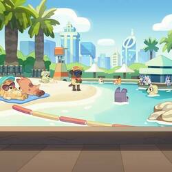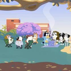 In Spy Game, a gathering of Bluey and her friends take place in a riverside park.