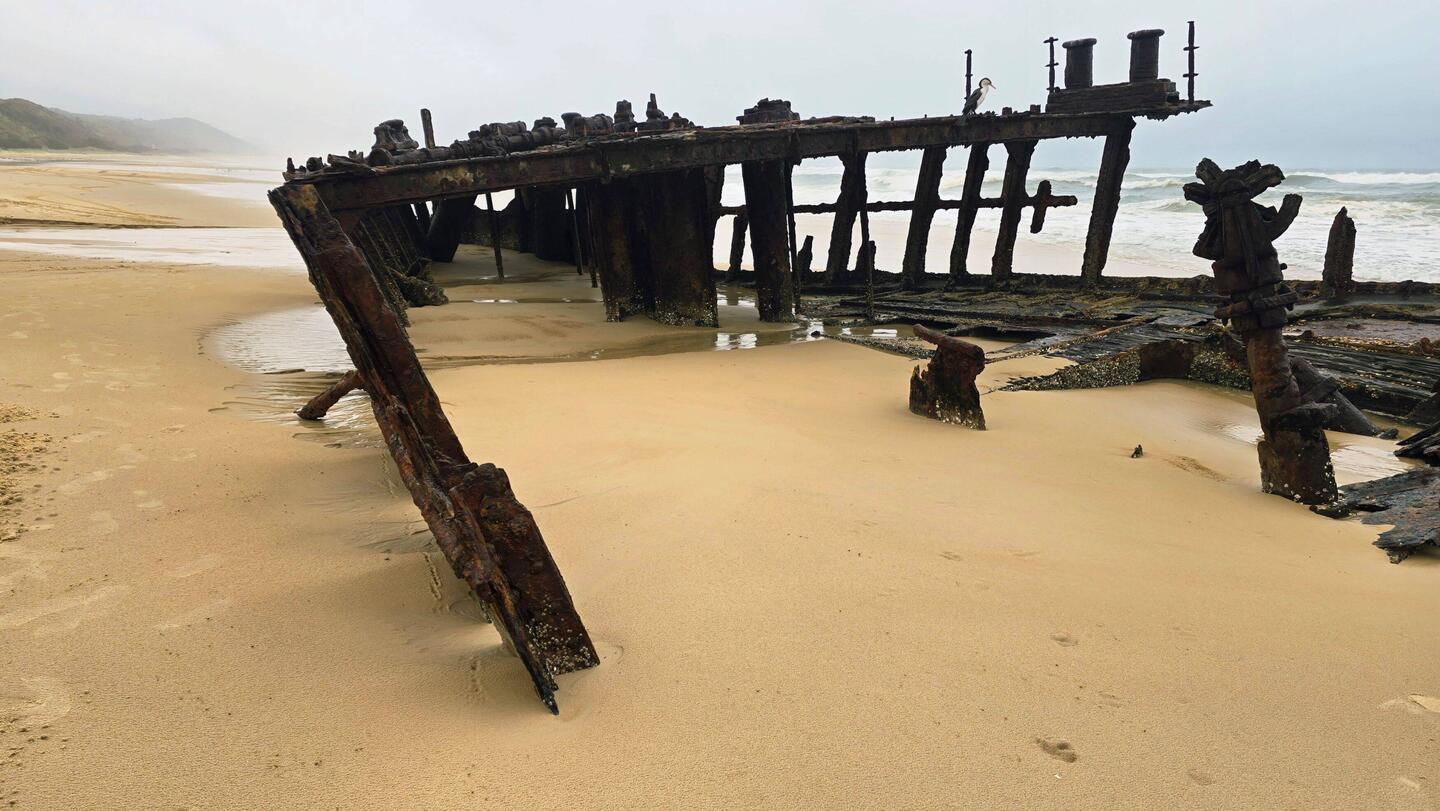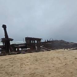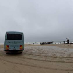 Quick stop to check out the wreck of the ship Maheno which has now been here 90 years. This is where the rain found us again.