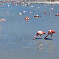 Our first look at flamingos in the wild. Happily feasting on the banks of this toxic lagoon of a mix of minerals. They go about their business as we walk by.