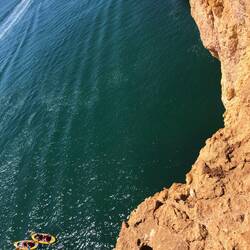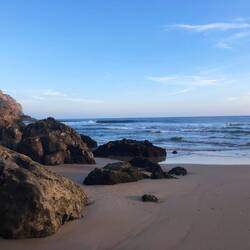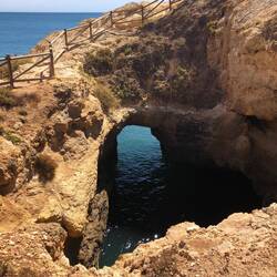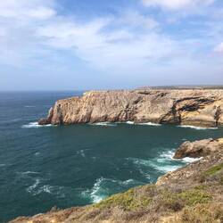 So heißt der große Fels tatsächlich, der sich da vom letzten Endes unseres Kontinents noch abgelöst hat - Pedra das Gaivotas - auch schön, dass der Stein auf Portugiesisch weiblich ist 😉 undLeer más