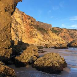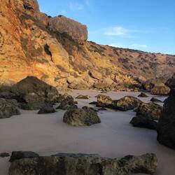 ... komme ich mir vor, im Angesicht mit diesen Felsen, als wären sie von Giganten leichthändig an diesen einmaligen Ort - dem Praia do Zavial - gestreut worden.