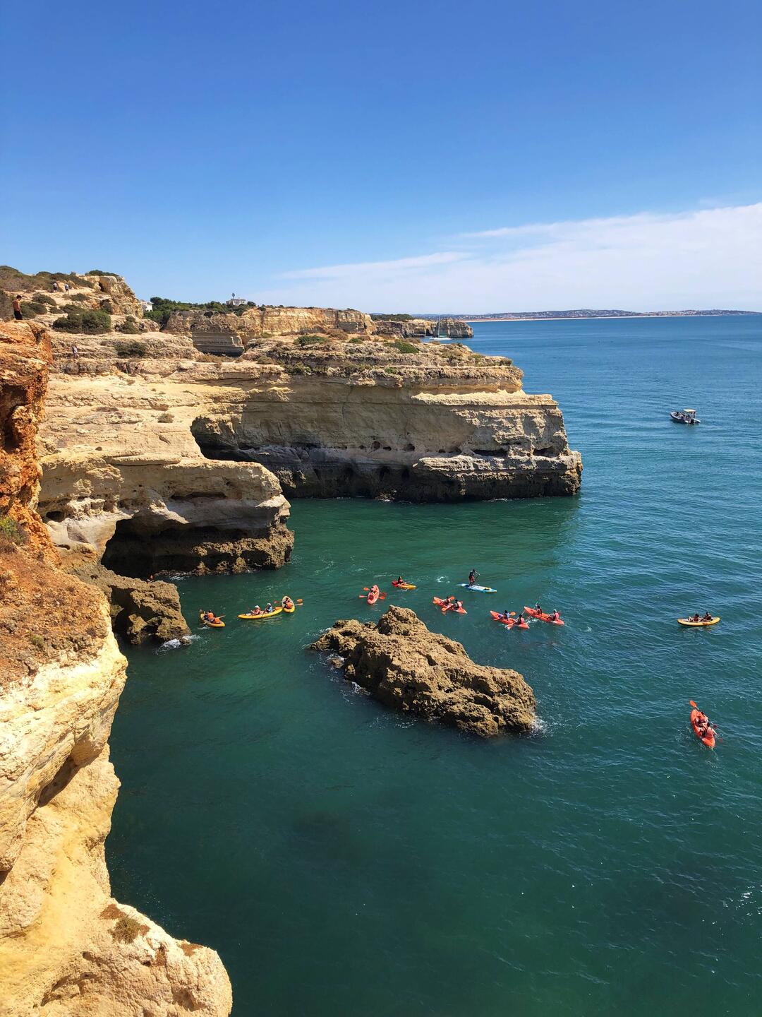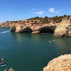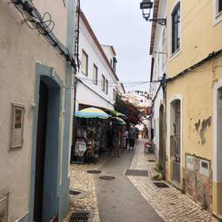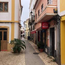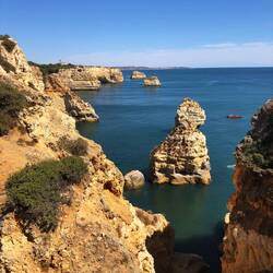 Ich wohne im kleinen Fischerdorf Ferragudo und laufe übers Meer ins grosse Portimão.