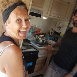 But the most important thing has been how mealtimes have brought people together, including our friends Melanie and Sebastian, a Spanish/French couple from along the camp; our other neighbours Mitchell and Linda (Mexican/Swedish), and Eddie, a friend of Mel and Sebas, who is from the US.