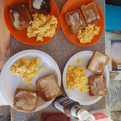 Before we set off, we had bought a jackfruit- as in, a whole one- as the pieces we bought were the ripe fruit which is seemingly no good as a meat replacement. What we didn't get told about when asking about the prep was what happens when you try to cut the thing. Basically, everything gets covered in glue! It excretes a natural latex which meant everything was sticking to our hands- neither Lucas or I got a photo because it was so much of a mess that it was somewhat dominating the experience. We've since learned some things we should do next time.