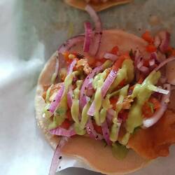 When we went to pay, I got chatting to a guy in the queue, Carlos, from Puerto Vallarta. He spoke great English, but I tried to stick to Spanish a sits good practise and I the show of effort makes for a better relationship, especially in those early moments. He gave us the wonderful news that there's another Taco Fish in Guadalajara, where we're headed soon! He also gave us some recommendations for streetfood in his hometown where we'll be before Guadalajara. Had we not been in a queue and all about to leave- he also seemed to be on a mission somewhere- I think this would have made a great candidate for a first in-depth conversation/interview about food, so I was a little sorry to say goodbye. Not to worry, though, I made the most of the time I had with him, and I can be happy with that.