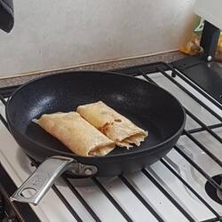 Lastly, Jen put her skills to work once more to knock out easily the best Spanish Tortilla that we've ever made. Our previous attempt using our new cast iron skillet resulted in it sticking- the pan needs further use with easier foods before it'll really turn as non stick as you hope for. So this time, she used a non-stick frying pan, and altered the recipe to cook the potatoes in a full cup of olive oil first. She tweaked the recipe to include some white onion, and boom! What a result. She was so (deservedly) pleased. We've been munching it with the pasta sauce I made and some good old British HP Sauce. The Spaniards would likely slaughter us for such an offensive act, but screw it. Why not?!