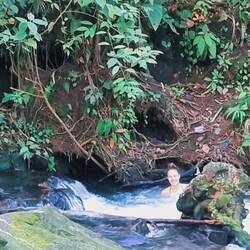 On our way back we come across the free Thermals: Right around a bridge people are sitting in the naturally hot waters of the brook, some enjoying a drink or two. Here we like it best!