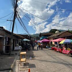 A well earned rest day. Breakfast at 7 is a very late breakfast but unfortunately it’s the usual fare of scrambled eggs, beans and rice, cheese and fried plantain - which we have had our fill of. And the coffee is the usual also. We have high hopes of a good coffee in town - apparently Honduras is the 6th largest exporter of coffee in the world. After catching up on admin / emails / banking / Beth’s flat purchase and cleaning bikes and changing to thicker tyres ready for the next few days that will be gravel, we head into town. First coffee shop is disappointing so we ask a local and get directed to another which has colourful hammock seats (see picture). We ask for an americano with cold milk on side and end up with an espresso and a massive cup of frothy hot milk ! But also an amazing cheesecake. Then a bit of shopping - Honduras cap for John to add to his collection and other small bits and pieces. Lunch is a bit disappointing- tacos but the beef mince doesn’t look well enough cooked so we leave that. Catharine buys a bottle of water for a young girl who is selling biscuits and says she is thirsty, only to watch the wee girl then take the bottle outside and hand it over to an older women who pockets it - perhaps to resell ?