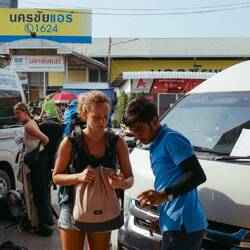 Heute ging es weiter nach Nong Khiaw, ein kleines Dorf im bergigen Norden von Laos. Als wir am Busbahnhof ankamen, sah der Bus schon komplett voll aus. Ob da noch Platz für uns ist? Wir nahmen die Czytaj więcej