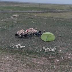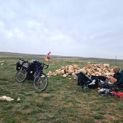 Sazlıca. Schon vorher hatten wir uns gedacht, dass es schön wäre, wenn wir noch irgendwo ein Brot ergattern könnten. Und tatsächlich kommt es noch besser! Zu unserer Linken entdecken wir eine Backstube, die sehr vielversprechend aussieht. Neben dem üblichen Brot werden auch gefüllte Poğaca und andere Backwaren angeboten. Vor allem lacht Claudia ein köstlich aussehendes flaches Gebäck an, welches laut Bäcker mit dem süß schmeckenden Tahini zubereitet wird. Wir werden von den Mitarbeitern zum Tee eingeladen und dazu wird uns eine in Häppchen geschnittene Hälfte des blätterteigartigen Tahini-Brotes serviert. In der Backstube herrscht reges Treiben, unsere Räder vor der Tür erregen interessierte Aufmerksamkeit. Mit einer Tüte voll Backwaren verlassen wir schließlich den Laden und verabschieden uns, vorher werden wir aber noch um ein gemeinsames Foto und unseren Instagram-Kontakt gebeten. Als wir ein halbe Stunde später noch einmal die Campingstühle aufstellen, um nach dem Tee vom Bäcker noch einen weiteren zu trinken, stellt Heiko fest, dass das eben erstellte Foto bereits mit Hinweis auf uns Touristen in Sazlıca auf Instagram gepostet wurde. Die weitere Fahrt führt uns mal wieder bergauf, etwas höher als 1600m liegt unser heutiges Zielgebiet. Unterwegs widerfährt uns noch ein Erlebnis der besonderen Art: Zwei riesige Schwärme Weißstörche fliegen direkt über unsere Köpfe hinweg. Staunend blicken wir in den Himmel und schauen den Vögeln fasziniert zu, wie sie elegant durch die Lüfte gleiten. In knapp über 1600m Höhe, also noch etwas unterhalb des Gipfels, spricht uns eine Wiese als Übernachtungsort an. Hinter einem Felshaufen erhoffen wir uns ein kleines bisschen Windschutz, hier richten wir uns häuslich ein. Leider ist der Himmel wolkenverhangen und sehr dunstig, so dass die Aussicht für uns sehr beschränkt bleibt. Die schneebedeckten Berge am Horizont lassen sich allenfalls erahnen. Diverse Schaf- und Ziegenherden sind noch unterwegs, die Glocken sind in unterschiedlicher Lautstärke aus allen Richtungen zu hören. Wir genießen diesen herrlichen Platz, sitzen bei Salat mit Poğaca vor dem Zelt und schlürfen den einen oder anderen Tee. Außerdem gibt es zum Nachtisch das köstliche Tahini-Brot, das vor allem Claudia hellauf begeistert. Es ist am ehesten beschreibbar als flaches Franzbrötchen mit Sesam- statt Zimtgeschmack und laut Claudia rangiert es unter den türkischen Delikatessen ab jetzt gaaaanz weit oben. Als irgendwann die Dunkelheit hereinbricht, wird es Zeit, die Campingstühle abzubauen und gegen Isomatte und Schlafsack einzutauschen.Leggi altro