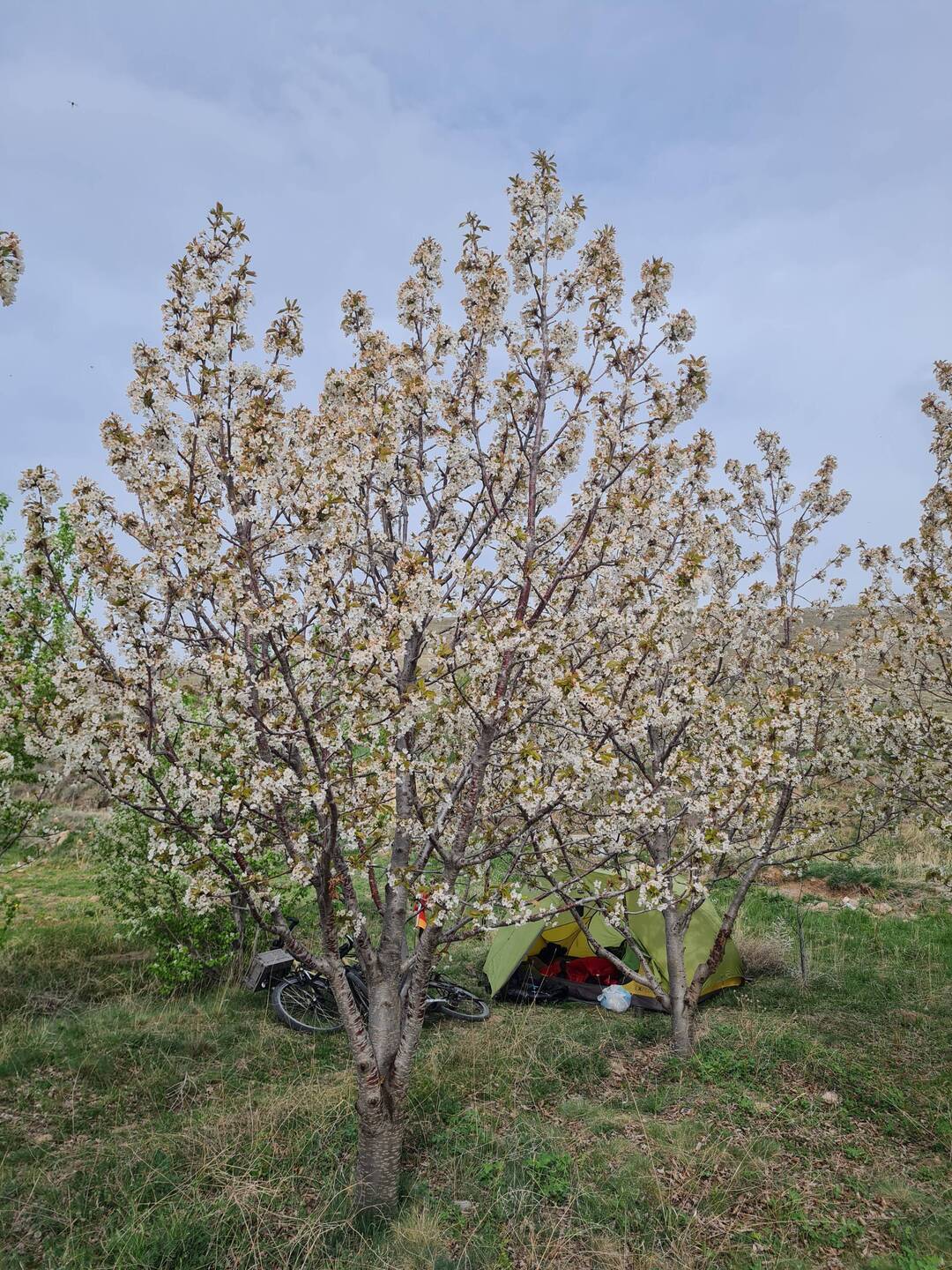 Um halb sieben beginnt unser Tag mitten im Obstbaumblütenmeer. Wie immer lassen wir es gemütlich angehen und sitzen letztendlich um kurz nach zehn auf den Rädern. Die ersten zehn Kilometer bis in die etwas größere Stadt Niğde sind zügig absolviert, geht es doch ausschließlich bergab. Wir nutzen die Gelegenheit der guten Infrastruktur und füllen bei einem Optiker Claudias Kontaktlinsenlösungsvorrat und in einem Turkcell-Laden unser Datenvolumen auf. Durch Zufall finden wir uns auf der Weiterfahrt mitten im Marktgetümmel wieder, so dass auch gleich etwas Obst und Gemüse in unseren Taschen landet. Auf schnurgerader Straße verlassen wir Niğde, der Wind weht mal wieder mächtig von vorne, die unmittelbare Umgebung ist alles andere als attraktiv. Viel Müll liegt überall verstreut herum, dazwischen tummeln sich reichlich Hunde. Wir treffen auf einen Mann, der mit seinem Auto diese Straße entlangfährt und regelmäßig hält, um die Hunde mit Wasser und Futter zu versorgen. Nach Überqueren einer Hauptstraße erreichen wir bald das Dorf