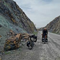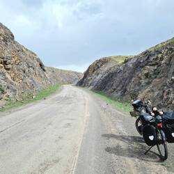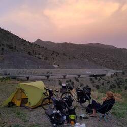 Die Hoffnung auf klare Sicht beim ersten morgendlichen Blick aus dem Zelt wird leider enttäuscht. Der Himmel zeigt sich weiterhin extrem dunstig, so dass uns die ersehnte klare Sicht auf die uns umgebende Bergwelt weiterhin verwehrt bleibt. Dafür bekommen wir Besuch von einer vorbeiziehenden Schafherde, was auch sehr schön anzusehen ist, im speziellen die verspielten kleinen Lämmer und Zicklein. Der Hirte hält auf ein paar Worte an, will uns auch direkt zum Frühstück in ein Zelt auf der anderen Seite der Straße einladen, wo auch seine Frau und seine Kinder seien. Wir haben allerdings bereits gefrühstückt und so schlagen wir das Angebot dankend aus und verabschieden uns vom weiterziehenden Hirten. Wir üben uns indes noch eine Weile in "Faulsein" im Zelt, spaßeshalber nehmen wir uns vor: "Wir bleiben einfach so lange hier, bis die Sicht wieder gut ist." Dieses Vorhaben scheitert zwar, aber tatsächlich ist es am Ende halb zwei, als wir nach gemütlichem Vormittag endlich abfahrbereit sind. Und von diesem Zeitpunkt an haben wir es mit dem Gegenteil von Gemütlichkeit zu tun. Bei Gegenwind der kräftigen Sorte müssen wir unsere Fahrräder davon überzeugen, uns bergauf zu befördern. Nach drei Kilometern ist die erste Anhöhe erreicht, nun geht es zur Erholung eine Weile abwärts weiter. Als der nächste Berg nach oben bittet, wird die Fahrt zum Kampf: Bei weiterhin sehr starkem Gegenwind sollen Steigungen im zweistelligen Prozentbereich bezwungen werden, das ist einigermaßen spaßfrei. Keuchend kommen wir aber oben an und stellen mal wieder fest: "Es ist bestimmt total schön hier.., wenn man nur klare Sicht hätte." Einige Kilometer geht es nun bergab, bis wir im Ort Başmakçı auf die Autobahn stoßen. Auf einer kleinen Straße, die vermutlich früher vor dem Bau der Autobahn die Hauptstraße war, fahren wir fortan parallel der großen, in die Berge gehauenen Asphalttrasse. Immer wieder wechseln wir die Seite, mal unter der Autobahn durch mal oben drüber. Leider hat auch der Wind in seiner Intensität nicht nachgelassen, zu seinem lauten Rauschen gesellt sich jetzt auch noch der Lärm des vorbeisausenden Verkehrs. Obwohl normalerweise Heiko den Wind als seinen Endgegner erklärt und gerne mal verflucht, schlagen die Umstände heute eher bei Claudia auf die Stimmung...! Eine Einkaufsmöglichkeit ergibt sich leider nicht auf unserer heutigen Fahrt, aber immerhin bekommen wir die Gelegenheit, an einer Wasserstelle unsere Trinkflaschen aufzufüllen. Reichlich geschafft vom ständigen Auf und Ab entlang der Autobahn frequentieren wir um kurz nach fünf eine kleine ebene Fläche oberhalb der Straße, die unser Nachlager werden soll. Es gibt Abendessen, Tee und Kekse und dazu einen Panoramablick im Abendrot auf die munter befahrene Autobahn. Vielleicht hat das Verkehrsrauschen in den Ohren ja jedenfalls einschläfernde Wirkung...Læs mere