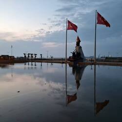 İskenderun Monument Square (İskenderun Anıt Meydanı), auf dem natürlich auch ein Mahnmal des Staatsgründers Mustafa Kemal Atatürk nicht fehlen darf. Leider stehen das auf einem Marmorsockel montierte Bronzewerk von Atatürk im Militäranzug auf einem sich aufbäumenden Pferd sowie der größte Teil des Platzes unter Wasser, was wir zunächst auf Regenfälle in den letzten Tagen zurückführen. Später erfahren wir allerdings, dass der Küstenstreifen an dieser Stelle durch das Erdbeben um einen Meter abesackt ist. Das erklärt natürlich einiges...!