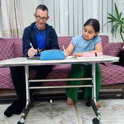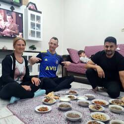 Wie mit unserer Gastfamilie verabredet stehen wir um 8 Uhr auf und bekommen als erstes einen türkischen Kaffee serviert. Es folgt ein reichhaltiges Frühstück und dann ist es an der Zeit, Abschied von Burak und seiner Familie zu nehmen. Die Räder, die wie wir in der Wohnung übernachtet haben, werden in den Vorgarten verfrachtet und beladen. Um das Erinnerungsfoto kümmert sich Beyzan, die angesichts einer allergisch bedingten "dicken Lippe" lieber hinter der Kamera bleiben möchte. Wir rollen winkend vom Hof und zurück auf die uns von gestern bereits bekannte Hauptstraße. Am Ortsende ändert sich die Größe der Straße ebenso wie der Untergrund drastisch. Fortan haben wir auf einer schmalen Piste Schotter unter den Reifen, hin und wieder abgelöst durch Wasser. An mehreren Stellen ist der Weg überflutet und wenn die Bodenbeschaffenheit oder die Wassertiefe kein vorsichtiges Durchfahren oder Durchschieben erlauben, ist Abladen und Einzelteile tragen angesagt. Für ein Teilstück wechseln wir kurzzeitig wieder auf die Hauptstraße, dort nervt aber der Verkehr. Also holpern wir doch auf Schotter weiter und kühlen zwischendurch beim Durchwaten der überschwemmten Abschnitte unsere Füße, wir haben ja Zeit...! Entlang des Weges kommen wir an vereinzelten kleinen Häusern vorbei, plötzlich rufen uns von zwei Grundstücken Menschen zu. Sowohl auf der rechten als auch auf der linken Wegseite winkt man uns heran und möchte uns zum Tee einladen. Die Entscheidung ist nicht leicht, wir wollen ja niemanden vor den Kopf stoßen. Ganz pragmatisch biegen wir auf das Grundstück ab, dass am dichtesten liegt. Während die Frau uns türkischen Kaffee vorbereitet, führt der Mann uns durch seinen Garten. Dieser dient der Selbstversorgung und es wächst dort tatsächlich von Obst bis Gemüse alles, was das Herz begehrt. Dazu wuseln noch ein Hund, eine Katze und viele Hühner auf dem Grundstück herum. Wir erfahren, dass die Familie durch das Erdbeben ihr Haus verloren hat und deshalb nun hier lebt. Eine Weile sitzen wir mit dem Ehepaar sowie einem etwas größeren und einem kleinen Mädchen am Tisch, trinken Kaffee und essen die ebenfalls servierten Süßigkeiten. Im Verlauf gesellt sich noch der Bruder unseres Gastgebers, der auf einem Traktor angeknattert kommt (und unbedingt fotografiert werden will) dazu. Als wir die Weiterfahrt antreten wollen, müssen wir feststellen, dass die Nachbarn des schräg gegenüberliegenden Hauses uns nicht vergessen haben. Erneut winken sie und rufen: „Çay, Çay!“ So nett und durchaus verlockend das natürlich ist, wir können einfach nicht alle paar Meter Tee trinken und türkische Köstlichkeiten futtern. So belassen wir es bei einem Gruß und radeln weiter. Der Himmel zeigt sich zunehmend bewölkt und es fallen zwischendurch immer mal wieder ein paar wenige Regentopfen. Am frühen Nachmittag nimmt die Anzahl der Tropfen dann aber leider in einem solchen Umfang zu, dass wir von echtem Regen sprechen müssen und der dunkelgraue Himmel verheißt für den Rest des Tages nichts Gutes. Wir sind schon reichlich nass, als wir eine überdachte hölzerne Sitzgruppe auf einem Schulhof erreichen und Schutz suchen. Abwarten und im wahrsten Sinne des Wortes Tee trinken, so lautet zunächst unserer Devise. Die Zeit verstreicht und es wird weder trockener noch gemütlicher, obendrein frieren wir inzwischen nicht zu wenig. Nun ist guter Rat teuer, zumal unser Zelt zwar bei gutem Wetter super ist, aber bei ausgeprägter Nässe von oben dezente Schwächen aufweist…! Idee Heiko: „Wir könnten zu einem Hotel fahren. Das nächste ist 38km entfernt, um acht könnten wir da sein.“ Claudia reagiert mittelbegeistert und formuliert eine halbherzige Gegenidee: „Ich gehe mit dem Regenschirm durch das Dorf und guck mal, ob ich eine überdachte Zeltoption sehe.“ Gesagt, getan, Claudia stapft in Flipflops mit Regenschirm durch die nassen Straßen. Nach wenigen Schritten ist die Sackgasse einer kleinen Straße erreicht, wo eine Frau auf Claudia aufmerksam wird und sie anspricht. Und da haben wir den Salat…, GUCKEN wollte Claudia nach einem möglichen Lagerplatz, SPRECHEN in türkischer Sprache ist dagegen ganz klar Heikos Fachgebiet. Der sitzt aber auf dem Schulhof und die Frau versteht natürlich kein Englisch. Okay, dann also die wenigen bekannten türkischen Vokabeln „turistler, Almanya, bisiklet, çadır, bir gece, eşim, okul“ aufsagen und mit mehr oder weniger gekonnter Mimik und Gestik zu einem Anliegen verbinden, das hoffentlich zumindest ansatzweise verstanden wird. Inzwischen hat sich auch eine Schar von Kindern unterschiedlichen Alters eingefunden und beteiligt sich rege an der Auflösung des Rätsels. Um dem Scharade-Spiel im Regen auf die Sprünge zu helfen, zückt die Frau ihr Telefon, ruft jemanden an und hält Claudia das Telefon hin. Bei der Stimme am anderen Ende handelt es sich um ihren Bruder, der ein Juweliergeschäft in Antalya betreibt und deutsch spricht, juhuuu! Alles kein Problem heißt es am Ende und dann werden wir (mal wieder) von einer riesigen Welle Gastfreundschaft überrollt. Die Kids wollen Claudia nicht mal mehr zurück zur Schule gehen lassen, sondern am liebsten Heiko und die Räder allein abholen. Der Kompromiss ist ein gemeinsamer Gang zur Schule, wo Heiko kurz darauf von einer Horde Menschen überrascht wird. Zurück am Haus wird uns eine große Garage geöffnet, wo wir unsere Räder parken können, dann werden wir in das sehr geräumige Wohnzimmer gebeten. Schon auf dem Weg zum Haus hat ein Junge Heiko als Fußballgesprächspartner auserkoren, nun schenkt er ihm ein Trikot seines Lieblingsvereins Fenerbahçe Istanbul, welches sofort angezogen wird. Wir werden auf dem Sofa platziert und alle Menschen, ob groß oder klein, sind um unser Wohlbefinden bemüht. Ein Heizstrahler wird eingeschaltet und direkt vor uns aufgestellt, wärmende Kleidung wird herangeschafft, die wir anziehen sollen (Widerstand zwecklos…) und in der Küche wir