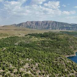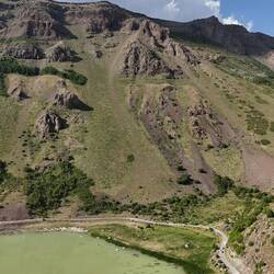 Im Westen geht der Blick in den Krater. Was hat ChatGPT dazu zu sagen? „Der Nemrut‑Kratersee bei Tatvan in der osttürkischen Provinz Bitlis ist ein beeindruckendes Naturdenkmal: Er liegt auf rund 2.247 m Höhe und bedeckt die westliche Hälfte einer riesigen Caldera des Vulkanbergs Nemrut, dessen Kegel während des Holozäns einst stürzte. Mit einer Fläche von etwa 12 km², einer durchschnittlichen Tiefe von rund 100 m (max. 176 m), gilt er als größter Kratersee der Türkei und einer der weltweit größten. In der Caldera finden sich fünf Seen – zwei dauerhaft, darunter kalte und heiße Gewässer – sowie Thermalquellen, Eishöhlen und Dampfschächte.“