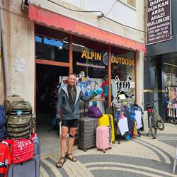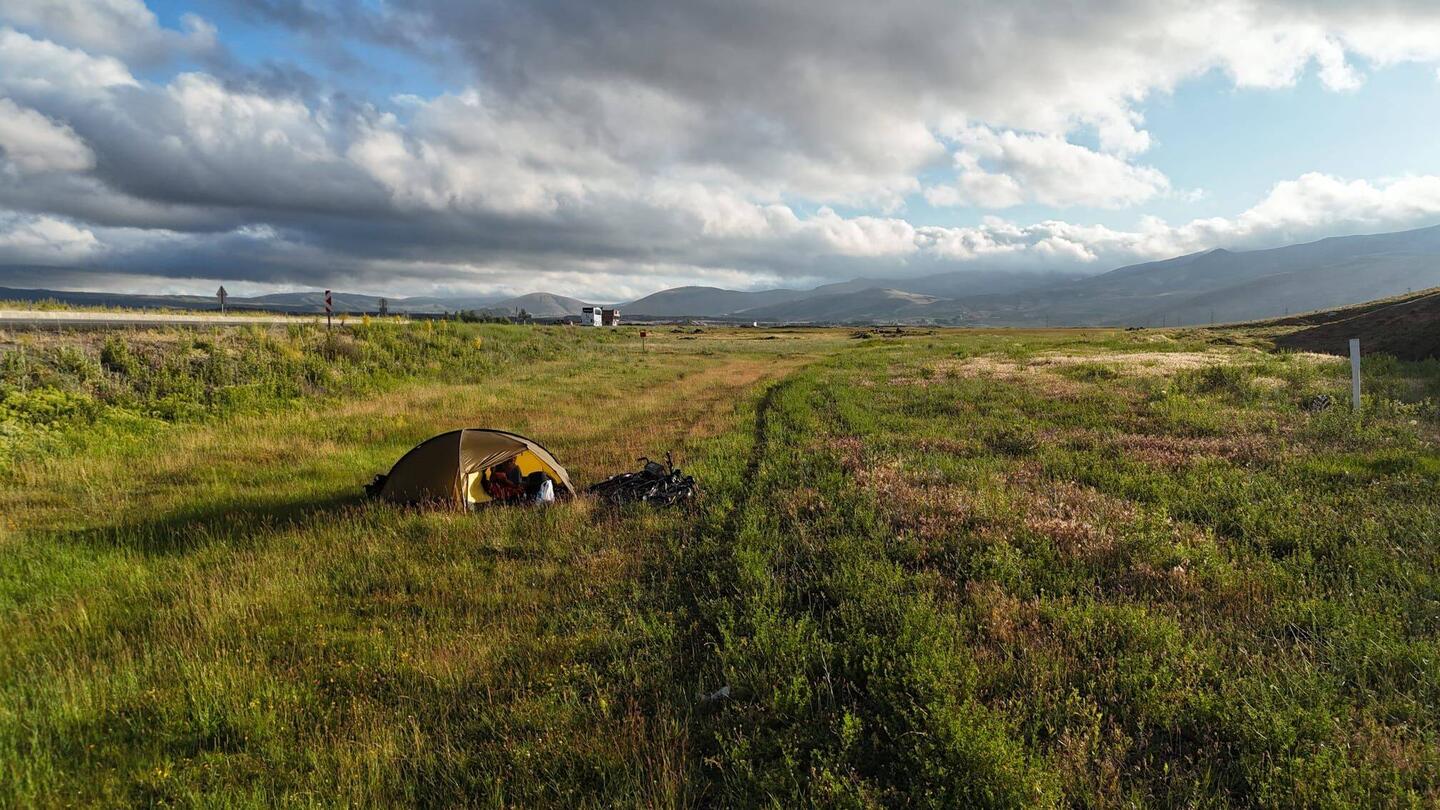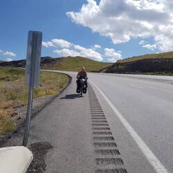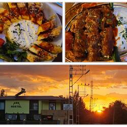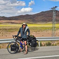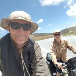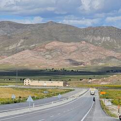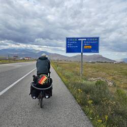 Als wir kurz nach dem Aufgang der Sonne aufwachen und frühstücken stellen wir fest, dass unser Zeltplatz eigentlich viel besser ist als von uns am gestrigen Abend wahrgenommen. Während Claudia sich nach dem Essen mit dem Schreiben von Notizen beschäftigt, kümmert Heiko sich um den Mantelwechsel an seinem Fahrrad. Der erste Eindruck nach Vollendung der Arbeit ist gut, nun dürfen wir gespannt sein, wie das Rad und speziell der Mantel sich unter der täglichen Belastung verhält. Um viertel vor zehn ist unser Lager geräumt und wir bereit zur Abfahrt. Als Claudia bereits an der Straße und Heiko noch auf dem Feld steht, erscheint ein gepanzertes Militärfahrzeug. Auf Höhe von Heiko kommt es zum Stehen und der augenscheinlich auch mit Kameras ausgestattete Geschützturm nimmt ihn nach Seitwärtsbewegung und Absenkung ins Visier. Etwas irritiert schwenkt Heiko das deutsche Fähnchen, welches hinten an seinem Fahrrad befestigt ist. Daraufhin öffnet sich die schwere Tür des Fahrzeugs, ein Soldat kommt zum Vorschein und fragt, ob alles in Ordnung ist oder es ein Problem bzw. Hilfebedarf gibt. Als der Soldat hört, dass alles bestens ist und wir nur hier gezeltet haben, verabschiedet er sich freundlich und taucht wieder in seine Panzerhülle ab. Laut unserer Recherche waren Kanone und Kamera eines taktisch gepanzerten Radfahrzeugs "Otokar Cobra II", das u.a. auch als Späh- und Patrouillenfahrzeug im Bereich des Grenzschutzes eingesetzt wird, auf Heiko gerichtet. Skurril! Wir haben uns zwar inzwischen fast daran gewöhnt, dass unterschiedlich geartete Militär- und Polizeifahrzeuge sowie unzählige Kontrollpunkte (wir werden immer freundlich durchgewunken...) zum üblichen Straßenbild in Kurdistan gehören, eine derartige Begegnung hatten wir aber bislang nicht. Die verstärkte Militärpräsenz begeitet uns auch während des Anstieges, den wir nun zu bewältigen haben. Nur wenige hundert Meter entfernt von uns verläuft parallel die iranische Grenze, was angesichts der auf dem Bergrücken zu unserer Rechten verlaufenden Mauer und den vielen Wachposten unübersehbar ist. Während wir uns von dieser Seite unter Dauerbeobachtung wähnen, sieht es linker Hand gänzlich anders aus. Weite Lavafelder am Fuße des Schildvulkans Tendürek Dağı und wunderschöne Berge am Horizont prägen das Landschaftsbild im Grenzbebiet zum Iran. Nach einiger Anstrengung können wir schließlich einen neuen Höhenrekord von 2581m auf unserer Reise dokumentieren. Die wohlverdiente Pause verschieben wir noch etwas, da wir uns hier auf dem Gipfel quasi auf dem Präsentierteller sämtlicher, uns umgebender Militärposten befinden. Wir rollen also ein Stück abwärts und sobald wir zumindest halbwegs außer Sichtweite sind, lassen wir uns für eine ausgedehnte Pause mit Heißgetränken und Knabbereien am Straßenrand nieder. Und das Tollste ist, dass uns nach dem kleinen Picknick nur noch eine Abfahrt erwartet, die sich über sagenhafte 30 Kilometer zieht. Wir rollen los und es ist, als würden wir in eine neue, eine andere Welt eintauchen. Die Landeschaft ist geprägt von fantastisch aussehenden Hügeln und Bergen in verschiedensten Formen und Farben: felsgrau, sandbeige, grasgrün und rostrot. Der Weg hinab bietet uns so viele schöne Panoramen, dass wir ständig anhalten, staunen und Bilder machen. Dank dieser kurzen Stopps entgehen uns glücklicherweise auch die Tiere am Wegesrand nicht: Noch in luftiger Höhe zeigt sich uns ein Fuchs (glauben wir...), weiter unten flitzen Erdmännchen, von denen die Google-Bildersuche behauptet, es seien Ziesel, über staubige Sandflächen und einige Pferde traben in wildromantischer Art und Weise über die Felder. Deutlich weniger schön hingegen werden wir die Begegnung mit einem Kind in Erinnerung behalten. Der vielleicht maximal achtjährige Junge taucht aus dem Nichts auf der großen Straße auf und wirft einen Stein auf Heikos Hinterrad, während dieser bergab fährt. Als Heiko anhält, wird er von dem Jungen, der auch einen Stock in der Hand hält, bedrängt und um Geld angebettelt. Als auch Claudia den Punkt erreicht, heißt es nur noch: Gas geben! Die Szene beschäftigt uns, vor allem Heiko, noch eine ganze Weile. Gemischte Gefühle machen sich breit, die von Wut bis hin zu Enttäuschung, Traurigkeit und Mitleid reichen. Was veranlasst ein Kind dazu, mit Steinen auf Touristen bzw. das Fahrrad zu werfen? Mit Sicherheit hat dieser Junge wie auch die vielen weiteren Kinder und deren Familien in dieser Gegend alles andere als ein leichtes Leben. Aber mit Steinen zu werfen und danach den Beworfenen um Geld zu bitten...? Die Gedanken um diese Situation fahren eine Weile mit. Trotz allem entgeht uns aber nicht, dass der höchste Berg der Türkei, der Ararat, in unser Blickfeld rückt. Wir erreichen unseren Zielort Doğubeyazıt, wo wir zu unserer Freude eine neue Gaskartusche erwerben können. Die Freude nach dem letzten Kauf hielt ja leider nur bis zu Feststellung an, dass die Kartusche nicht funktioniert. Einen Einkauf erledigen wir noch und steuern dann ein Hostel etwas östlich der Stadt an, welches uns aufgrund der ungewöhnlich tollen Google-Bewertungen neugierig gemacht hat. Schon während der Fahrt können wir den beeindruckenden İshak Pasha Palast in der Ferne erkennen, dem wir morgen einen Besuch abstatten wollen. Es ist etwa 18 Uhr, als wir ohne Probleme die Unterkunft "ARK Hostel & Camp Caravaning" erreichen. Sofort macht die Anlage einen sympathischen Eindruck auf uns, vom Gastgeber Zafer werden wir freundlich empfangen. Wir erfahren, dass wir aktuell die einzigen Gäste sind, was laut Zafer daran liegt, dass viele Reisende wegen der derzeitigen Situation im benachbarten Iran die Gegend meiden bzw. die Reiseroute ändern. Wir beziehen ein großzügiges Zimmer, duschen ausgiebig und sind fasziniert vom Anblick der Berge in herrlichstem Abendlicht. Das Essen in einem nahegelegenen Restaurant ist köstlich und zum Ausklang des Tages genießen wir einen Tee auf de