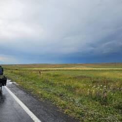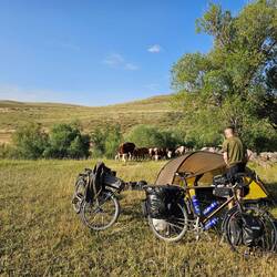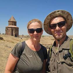 Geblieben ist von Glanz und Gloria leider nur wenig. Nach Belagerungen, Kriegen und schweren Erdbeben seit dem 12. Jahrhundert verlor Ani allmählich an Bedeutung und geriet in Vergessenheit. Nachdem die Region lange Zeit militärisches Sperrgebiet war, sind seit der touristischen Erschließung heute große Teile der Stadt frei zugänglich. Wir treten also durch die Überreste der massiven Stadtmauer, um die seit mehr als drei Jahrhunderten verlassenen Ruinen der ehemaligen Festungsstadt zu erkunden. Es erinnert nicht mehr viel an die 100.000 Einwohner, die einst in dieser Stadt lebten. Neben den Kirchen mit noch teilweise erhaltenen Fresken und diversen Grundmauern lassen heute nur noch die Überreste eines ehemaligen Palastgebäudes sowie die Zitadelle erahnen, wie die Stadt wohl zur Blütezeit des armenischen Reiches ausgesehen haben mag. Wie schon oftmals und an anderen Orten zuvor überlegt Heiko, wie es wohl wäre, in die damalige Zeit zu reisen und Zeuge des Lebens und Treibens in Ani zu sein. Aber wir müssen uns wohl unsere Fantasie spielen lassen. Über eine Strecke von etwa fünf Kilometern folgen wir den Wegen durch die Geister- oder Ruinenstadt und besichtigen die mehr oder weniger gut erhaltenen Bauten. Besonders angetan sind wir aber auch von der landschaftlichen Schönheit. Die Stadt liegt auf einem Plateau und bietet einen atemberaubenden Blick auf die Schlucht des Flusses Arpaçay, welche hier die natürliche Grenze zu Armenien bildet. Die sehr hübsche und besonders gut erhaltene Kirche Sankt Gregor von Tigran Honent liegt malerisch direkt an der Schlucht mit Blick auf den Grenzfluss. Gute zwei Stunden spazieren wir über die weitläufige antike Stätte und freuen uns sehr, diesen Abstecher gemacht zu haben. Wir erreichen schließlich wieder das Besucherzentrum am Ein- bzw. Ausgang, wo inzwischen reger Betrieb ist. Der Parkplatz ist deutlich voller und viele Menschen strömen in Richtung des Einlasses. Wir sind froh, dass wir so früh vor Ort und fast allein auf dem Gelände unterwegs waren. Gleichzeitig verwundert es uns angesichts der Besuchermenge nun umso mehr, dass auf dem Gelände nicht einmal Getränke zum Verkauf angeboten werden. Wir schnappen uns unsere Räder, die artig neben dem Ticket-Häuschen auf uns gewartet haben und lassen Ani hinter uns. Wir sind noch nicht weit gefahren, da kommen uns zwei Radreisende entgegen - die ersten und einzigen in diesem Urlaub. Die beiden steuern auf uns zu und natürlich halten wir für einen kurzen Austausch an. Bérangère und David kommen aus Frankreich und sind seit acht Monaten mit dem Rad unterwegs, ihr weiterer Weg wird die beiden nach Georgien führen. Nach einer Weile fahren wir weiter, die Franzosen bergab nach Ani und wir bergauf in die entgegengesetzte Richtung. Die Temperatur ist inzwischen bereits wieder ordentlich nach oben geklettert, Schatten suchen wir vergeblich. Leider existiert auch das in Google Maps verzeichnete und gut rezensierte Restaurant nicht, auf welches wir für eine Rast gehofft hatten. Und nicht nur das, zusätzlich ziehen auch bedrohlich dunkle Wolken auf, in der Ferne hören es es bereits verdächtig grummeln. Das Glück ist aber auf unserer Seite, noch im Trockenen erreichen wir eine Tankstelle. Kurz nach Ankunft unter dem schützenden Dach frischt der Wind auf und Regen setzt ein. Binnen weniger Minuten weht es so stark, dass selbst die große Mülltonne droht, über das Tankstellengelände zu fliegen. Heiko checkt seine türkische Wetter-App und stolpert über folgende Unwetterwarnung: "Es werden örtlich schwere Gewitter erwartet. Vorsicht und Vorsichtsmaßnahmen sind bei möglichen Gefahren wie Sturzfluten, Überschwemmungen, Blitzen, Hagel, Tornados, starkem Wind und Verkehrsbehinderungen während der Regenfälle geboten." Tatsächlich fegt ein ausgewachsenes Gewitter über uns hinweg. Und während wir gerade noch auf dem Rad geschwitzt haben, ist uns nun empfindlich kalt. Ein freundlicher Herr hat wohl Mitleid, als er sieht, wie wir uns schlotternd vor Kälte in eine möglichst windgeschützte Ecke des Tankstellengebäudes kauern. Er überreicht uns jedem einen Tee und eine Rolle Kekse. Glücklicherweise ist der Spuk schnell vorbei, die dunklen Wolken ziehen weiter, der Regen hört auf, es wird wieder hell und warm. Ein letztes Mal in diesem Urlaub ernennen wir 25 Kilometer vor unserem Ziel, der Stadt Kars, ein Stoppelfeld zum Zeltplatz. Frische Tomatensuppe mit Nudeln gibt es zum Abendessen, das Dessert besteht aus Tee und Keksen. Die Sonne geht noch einmal besonders hübsch für uns unter und dann bricht sie an, unsere letzte Outdoor-Nacht.Read more