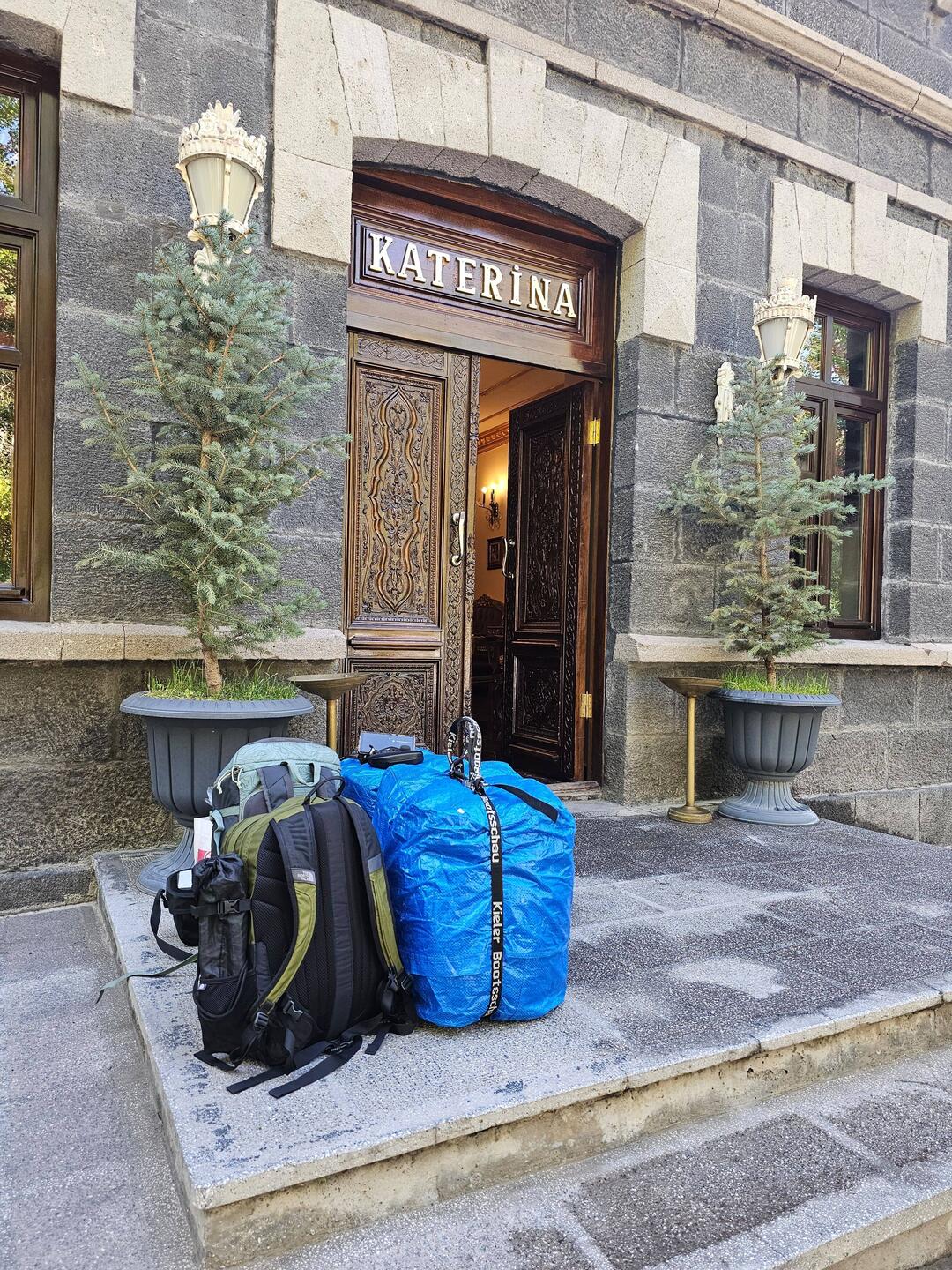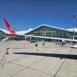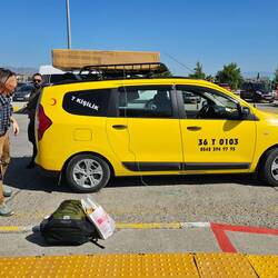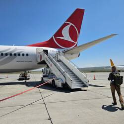 Recht entspannt beginnt der heutige Rückreisetag. Es ist noch ausreichend Zeit für das Frühstück im Hotel, der Shuttle zum Flughafen ist für halb neun bestellt. Als das Taxi vorfährt, fragen wir uns kurz, wie Fahrräder und Gepäck in das Auto passen sollen, bis wir erfahren, dass mindestens ein Rad auf dem Dach transportiert werden soll. Zur Befestigung soll lediglich eine dünne Wäscheleine dienen, was uns etwas nervös werden lässt. Heiko hat glücklicherweise noch einen langen Spannriemen griffbereit und befestigt diesen zusätzlich, was uns zumindest etwas beruhigt. Der zweite Karton und das Gepäck werden in das Innere des Autos geschoben, Claudia quetscht sich irgendwie dazwischen. Menschen und Gepäck erreichen am Ende unbeschadet das Ziel, nun ist die Abreise wirklich nicht mehr fern. Am kleinen, sehr übersichtlichen Flughafen von Kars ist das übliche lästige Procedere vor Abflug schnell erledigt. Pünktlich heben wir ab, um nach einem Zwischenstopp in İstanbul in die norddeutsche Heimat zurückzukehren.