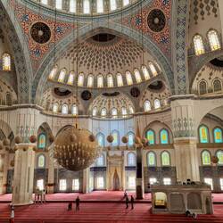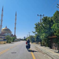 Zeitig begeben wir uns am Morgen an das Frühstücksbuffet des Hotels, um direkt im Anschluss auszuchecken und unser heutiges Sightseeing-Programm zu starten. Auf keinen Fall wollen wir es bei unserem Besuch in Ankara versäumen, die Grabstätte vom Gründer der Republik zu besuchen. Das Anıtkabir, welches wir bereits von unserem Hotelzimmer im fünften Stock bestaunen konnten, zählt zu den wichtigsten Bauwerken der Türkei. Auf einem Hügel wurde das Mausoleum für Mustafa Kemal Atatürk, den im Jahr 1938 verstorbenen Staatsgründer der Republik Türkei, zwischen 1944 und 1953 gebaut. Es gilt heute als Heiligtum und wichtiger Pilgerort der Republik. Schnell ist die gut bewachte Anlage erreicht, wo wir unsere Rucksäcke abgeben müssen, bevor wir kostenfreien Zugang erhalten. Das riesige, mitten in der Stadt liegende Areal besteht aus dem Mausoleum Atatürks, dem Festplatz und der von Löwenskulpturen gesäumten Ehrenstraße. An Staatsfeiertagen und zu wichtigen Anlässen erweist hier die Staatsspitze der Türkei dem Staatsgründer die Ehre, aber auch viele Türken und ausländische Staatsgäste besuchen das Anıtkabir. Angesichts der frühen Tageszeit ist die Zahl der Besucher noch überschaubar, als wir diesen Ort einerseits im Freien erkunden und andererseits den symbolischen, 40 Tonnen schweren Marmorsarkophag des Staatsgründers im Inneren des Mausoleums in Augenschein nehmen. Wir lassen sowohl die Architektur des imposanten Bauwerks als auch die besondere Atmosphäre auf uns wirken und gelangen einstimmig zu der Überzeugung, dass die Besichtigung dieses Ortes im Rahmen eines Aufenthaltes in der Hauptstadt tatsächlich ein absolutes "Muss" ist. Sehr eindrucksvoll und nachhaltig spüren wir, welche Bedeutung Atatürk für die moderne Türkei hat. Während wir hautnah der Wachablösung beiwohnen, wird uns bei einem Blick in die Menge die Ehrfurcht gewahr, welche dem Staatsgründer bis heute entgegengebracht wird. Es ist förmlich spürbar, wie wichtig dieser Mann auch heute noch von den Türken genommen wird, welche Achtung und welchen Respekt man vor ihm und seiner Leistung für das Land hat. Schließlich besuchen wir noch das Museum, das in den umliegenden Gebäuden untergebracht ist. Ausstellungen mit Gegenständen aus dem Leben und Wirken Atatürks sowie eine Galerie mit Schlachtengemälden sind hier zu besichtigen. Gesättigt mit vielen spannenden Eindrücken verlassen wir gegen Mittag, als der Besucheransturm deutlich zugenommen hat, das Anıtkabir und steuern einen Kiosk auf der gegenüberliegenden Straßenseite an, der sich am Rande einer Sportanlage befindet. In unmittelbarer Nachbarschaft zum Fußballplatz, auf welchem gerade ein Spiel ausgetragen wird, lassen wir uns Tee und Kuchen schmecken. Unser nächstes Ziel ist dann die größte Moschee Ankaras, die Kocatepe Moschee (Kocatepe Camii) südlich der Altstadt. An dem im Jahr 1987 fertiggestellten Komplex angekommen sind wir zunächst etwas irritiert, denn hier treffen tatsächlich Tradition und Moderne auf engstem Raum aufeinander: Im Gegensatz zu den klassischen Moscheen in der Türkei wurde im Untergeschoss der Kocatepe Camii ein riesiges modernes Einkaufszentrum mit großem Parkhaus errichtet, um mit den Mieteinnahmen die Moschee zu finanzieren.  Im Inneren der Moschee strahlt das Licht durch große Fenster aus buntem Glas direkt auf eine große goldene Kugellampe an der Decke, der Boden ist vollständig mit Teppich ausgelegt. Eine Weile saugen wir die Stimmung auf, bevor wir unser Touristenprogramm fortsetzen. Um keine Reizüberflutung zu erleiden, darf es nun gerne etwas Ruhe und Idylle sein. Wir spazieren in Richtung des Dikmen Vadisi Park, bei welchem es sich laut unserer Recherche um den wohl schönsten Park in ganz Ankara handeln soll. Es heißt: „Wer sich ein wenig vom Stress und Lärm der Stadt erholen möchte, ist hier genau richtig. Die wunderschöne grüne Oase liegt in einer Art kleinem Tal und lässt einen wieder aufatmen und entspannen. Sie zeichnet sich aus durch vielfältige Vegetation, Wasserstellen und sogar Weinbergen.“ Unsere Hoffnung, in einem Café in idyllischer Lage die Seele baumeln lassen zu können, wird dann aber jäh zerstört. Falls es die beschriebenen Glanzzeiten einmal gegeben haben soll, gehören sie definitiv der Vergangenheit an. Wir finden einen eher sehr deprimierenden und arg vernachlässigten Ort vor, der wie eine Schlucht im Beton-Dschungel anmutet. Die künstlich angelegte „Wasserlandschaft“ liegt brach, Cafés suchen wir vergeblich und wir nehmen die sogenannte Oase eher als unheimlich wahr. Inmitten riesiger Hochhäuser finden wir kaum einen Ausweg aus dieser verwahrlosten Schlucht. Entsprechend erleichtert sind wir, als wir nach einigen Kilometern Fußmarsch diese seltsame Anlage verlassen und ein Taxi entdecken. Wir lassen uns zurück in die Stadt bringen und am Fuße des Burghügels absetzen. Ein letztes Mal schlendern wir durch die Altstadt und kaufen noch ein paar Kleinigkeiten ein. Mit einem leckeren Abendessen in einem Restaurant beenden wir unseren Besuch in Ankara und lassen uns anschließend von einem Taxi zurück zu unserem Hotel in Esenboğa chauffieren. Hier ist es nun an der Zeit, unser Gepäck für die morgige Abreise vorzubereiten, indem die einzelnen Fahrradtaschen nach nunmehr acht Wochen wieder zu zwei „IKEA-Taschen-Bündeln“ verschnürt werden. Irgendwann geht eben auch der längste Urlaub zu Ende und so treten wir eine letzte Nachtruhe in der Türkei an. İyi geceler! Czytaj więcej