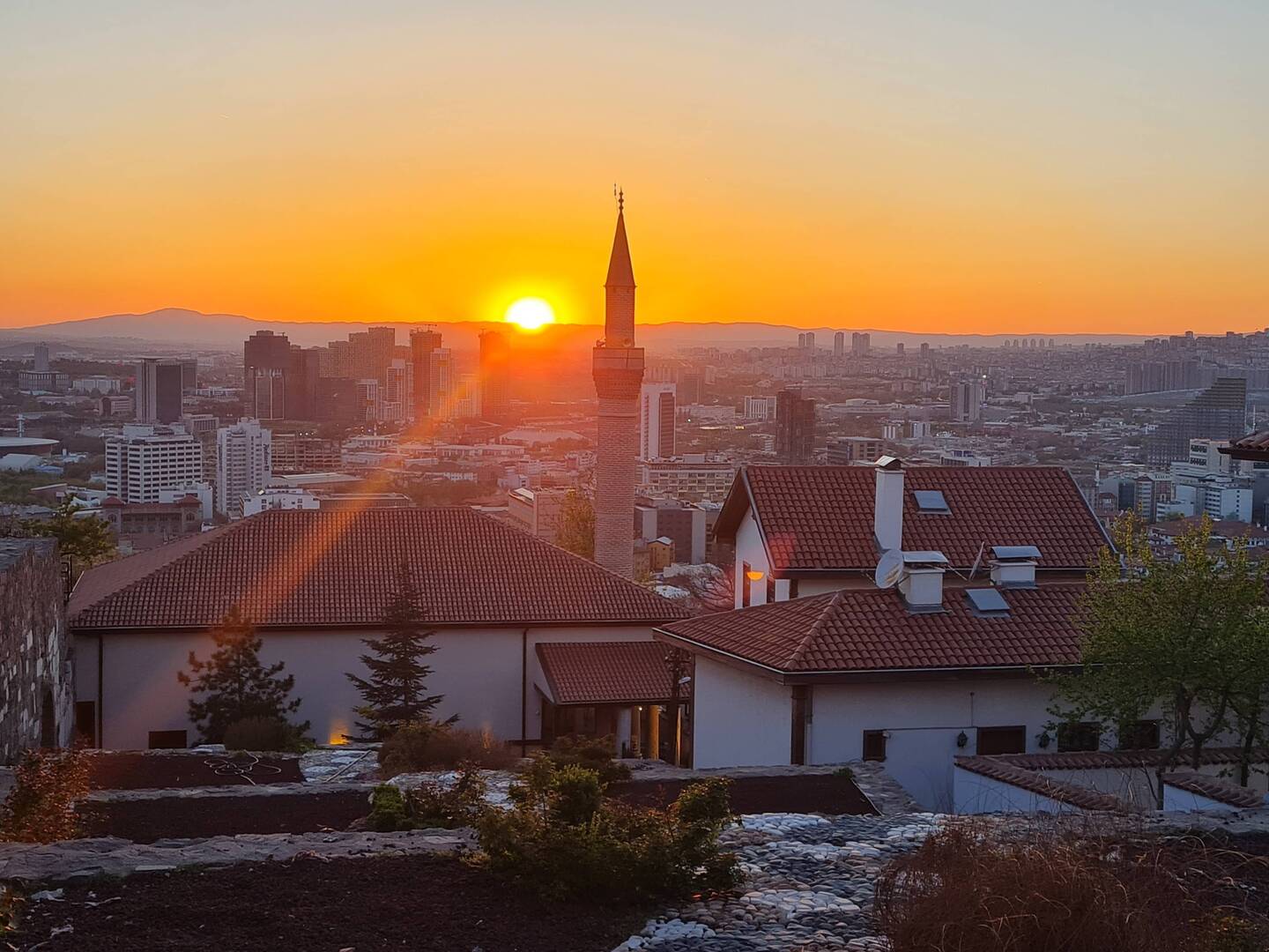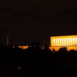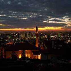 Mit dem Eindruck einiger dargebotener Lieder geben wir uns zufrieden und ziehen weiter. Erneut steigen wir hinauf zur Festungsmauer und freuen uns über die Aussicht. Und so stehen wir hier und lassen unseren Blick über die Stadt schweifen, während die untergehende Sonne den Horizont in rotes Licht taucht, bevor die Dunkelheit einbricht und in der Stadt nach und nach die Lichter angehen. Der anschließende Abstieg ist etwa zur Hälfte gemeistert, als wir ein gelbes Taxi anhalten und uns zum Hotel bringen lassen. Bevor wir aber im Zimmer den Feierabend einläuten, kehren wir erst auf einen Iskender-Kebab in einem Restaurant ein und vernichten danach im Café gegenüber etwas zu viel Baklava. Satt und zufrieden führt uns der letzte Aufstieg des Tages (ehrlich gesagt handelt es sich eher um eine Fahrstuhlauffahrt...) in unser "Loft" im fünften Stock, wo wir einen letzten Blick auf das beleuchtete Atatürk Mausoleum werfen und dann dem Ruf der Matratze folgen.