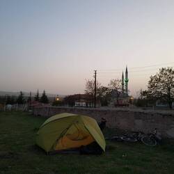 Als wir am Morgen aufwachen, dominiert weiterhin das Geräusch des Sturms, Regen und Gewitter sind aber ausgeblieben. Zu behaupten, dass wir in einer Sandkiste sitzen, wäre zwar etwas übertrieben, aber dieses feine rote Zeug überall im Zelt ist alles andere als angenehm. Wir fällen den Entschluss, unsere sieben Sachen zu packen und aufzubrechen, unser Frühstück wollen wir an einem windgeschützten Ort nachholen. Eigentlich gelingt uns der Abbau des Zeltes trotz des starken Windes recht gut, hätte Heiko da nicht eine Kleinigkeit im Zelt vergessen. Auf diese Kleinigkeit in Form von Bananen wird er aufmerksam, als er sich auf das zusammengerollte Innenzelt kniet, um die letzte Luft entweichen zu lassen. So gut es geht beseitigen wir Obstmatsch aus dem Seitenfach des Innenzeltes, um anschließend unseren ungeschützt dem Wind ausgesetzten Platz zu verlassen. Nur einen Kilometer weiter entdecken wir am Eingang eines kleinen Dorfes eine windgeschützte Ecke zwischen verlassenen und recht verfallenen Häusern, die wir für unser Frühstück nutzen. Es dauert nicht lange, da gesellt sich ein interessierter Dorfbewohner zu uns. Ein Gespräch wird allerdings nicht nur durch unzureichende Sprachkenntnisse erschwert, der Mann ist obendrein noch tracheotomiert und kann demzufolge nicht sprechen. Nach einer kurzen Konversation mittels Handy, Zettel und Stift verabschiedet er sich wieder. Wir stellen uns indes frisch gestärkt unserem heutigen Endgegner, dem Wind. Tja, und wenn man schon in der Ebene trotz Anstrengung nur 8km/h erreicht, macht das Erklimmen eines teilweise biestig steilen Berges nicht wirklich Spaß. Das vermutet wohl auch der Autofahrer, der extra anhält, um uns eine Flasche Wasser zu schenken. Irgendwann erreichen wir aber tatsächlich den höchsten Punkt und genehmigen uns an einem halbwegs windgeschützten Platz (man wird zwangsläufig bescheiden in dieser offenen und baumarmen bzw. -losen Gegend...) die Standardbelohnung: Chips! Die meisten Höhenmeter des Tages sind aber geschafft, durch hügeliges Terrain kämpfen wir uns weiter durch den Wind, über dessen Stärke auch der freundlich blaue Himmel nicht hinwegtäuschen kann. Jede noch so kleine Richtungsänderung, die den direkt frontalen Windangriff kurz außer Kraft setzt, ist eine Wohltat. Erst am Nachmittag, nachdem wir bei Heißgetränk und Kuchen eine Pause eingelegt haben, flaut es etwas ab. So radeln sich die letzten Tageskilometer etwas entspannter, bevor wir mal wieder die Augen nach einer Schlafgelegenheit offen halten. Es ist halb sechs, als wir im kleinen Dorf Kaçarlı fündig werden. Als Heiko zwei Männer fragt, ob es okay wäre, auf dem gegenüberliegenden großen Spielplatzgelände zu zelten, bieten diese einen anderen, laut ihrer Aussage sichereren, Platz in Sichtweite an. Wir nehmen das Angebot dankend an und richten unseren Lagerplatz auf der zugewiesenen Wiese vor einer kleinen Mauer ein. Etwas irritierend erscheint uns die Tatsache, dass es auf dieser Wiese auch ein bewohntes Haus sowie zwei Hunde gibt und wir uns folglich auf einem Privatgrundstück befinden, aber das nehmen wir einfach mal so hin. Nach dem Abendessen bekommen wir Besuch von einem Ehepaar mit zwei kleinen Kindern, İsmail stellt sich uns als der İmam des Dorfes vor. Kurz darauf kommt ein älterer Herr dazu, der das Haus bewohnt, auf dessen Grundstück wir lagern. Nach kurzem Wortwechsel verabreden wir, später gemeinsam Tee zu trinken. İsmail muss vorher noch die Aufforderung zum Gebet vom Minarett der Moschee rufen und auch seine Frau samt Kindern sowie der ältere Herr ziehen erstmal wieder von dannen. Wir wissen nicht genau, wann und wo später etwas stattfinden soll, warten also einfach mal ab und vertreiben uns vor dem Zelt die Zeit. Bald kommt der ältere Herr mit einem Tablett, auf welchem reichlich Teegläser und Kekse stehen. Kurz darauf erscheint eine ältere Frau und bringt einen Schal, der wohl als Teewärmer dienen soll. Der ältere Herr verschwindet wieder, um einige Minuten später eine große typisch türkische "Doppelkanne" Tee zu unserem Platz zu balancieren. Eine weitere Frau kommt dazu und stellt ein silbernes Tablett mit reichlich türkischen Süßigkeiten auf unseren kleinen Campingtisch. Und schließlich sind auch İsmail uns seine Familie wieder da und steuern Datteln uns Sonnenblumenkerne bei. Ein Junge im Teenageralter schleppt einige dicke Sofakissen ran und so sitzen wir im schwachen Schein der Straßenlaterne zu zehnt vor unserem Zelt auf dem Boden im Kreis, trinken Tee, knabbern viel zu viel Süßes und unterhalten uns in dem Maße, wie es die Sprachkenntnisse zulassen. Gegen 22 Uhr findet der gesellige Abend sein Ende und wir läuten die Nachtruhe ein. Czytaj więcej