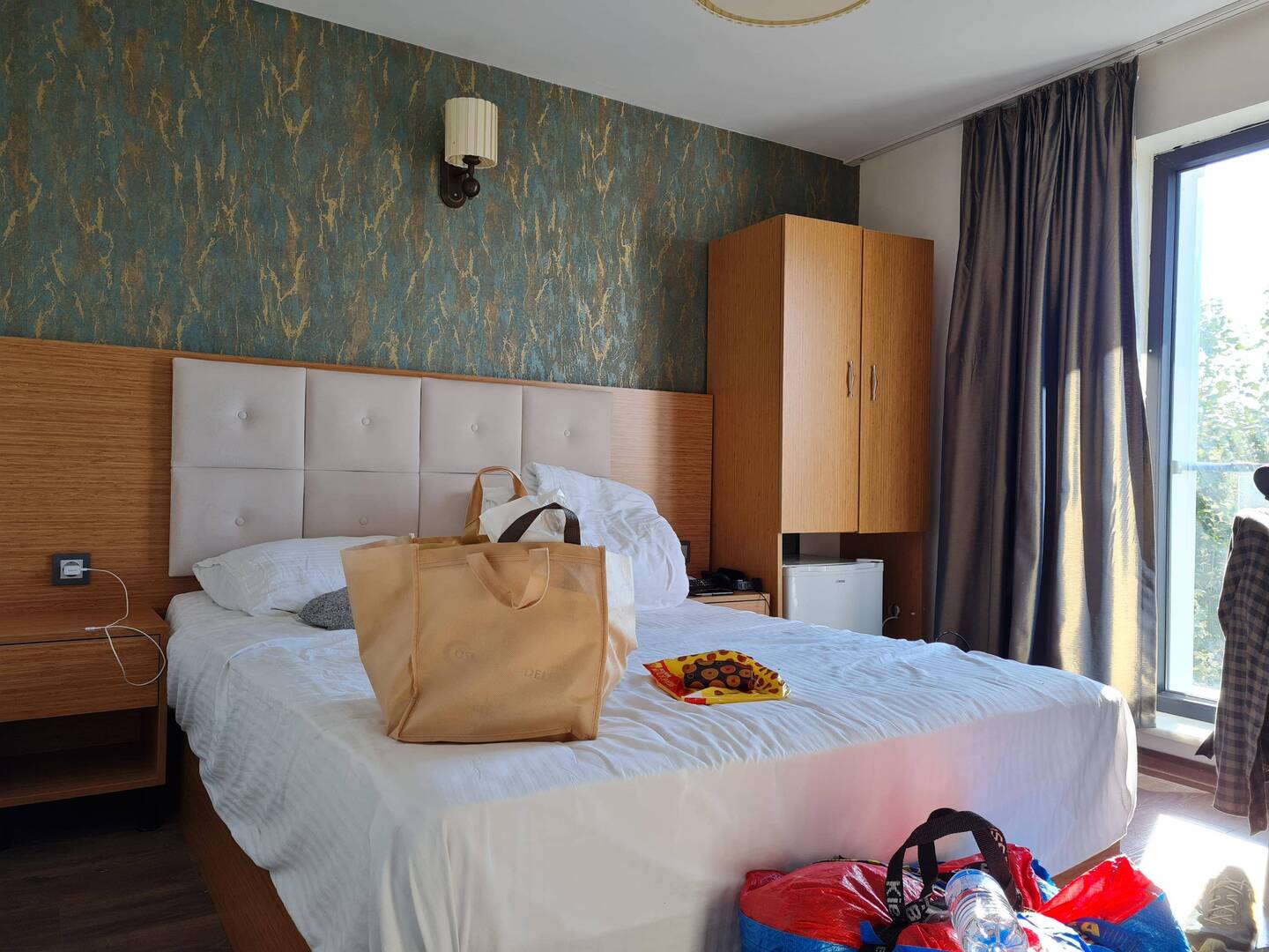 Schon beim Einbiegen in die Straße zu unserem Hotel müssen wir eine Schranke zum sogenannten "Durusu-Park" passieren und dem Pförtner erklären, wo wir hin wollen. Wir fragen uns, wo wir hier gelandet sind, während wir über weitere knapp 2 Kilometer diverse ziemlich nobel aussehende Privatanwesen passieren. Schließlich erreichen wir die Hotelanlage und werden auch gleich von einem sehr freundlichen, aber auch wahrlich skurrilen Rezeptionisten empfangen. Der Prozess des Eincheckens hat Comedy-Charakter, man hätte fast auf die Idee kommen können, Opfer einer Sendung mit versteckter Kamera zu sein. Dies ist glücklicherweise nicht der Fall und wir beziehen unser riesiges Zimmer mit Terasse in Sichtweite zum beleuchteten Pool. Manchmal wundern wir uns selbst drüber, an was für Orte es uns so verschlägt. Vergleichsweise "underdressed", aber wenigstens frisch geduscht, suchen wir noch das Restaurant des Anwesens auf und gönnen uns ein sehr üppiges und leckeres Abendessen inklusive Baklava zum Nachtisch.