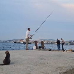 Wir verlassen das französische Viertel und durchqueren auf unserem Weg zur Hauptstraße am Bosporus die alte und gebrauchte Welt auf der Antiquitätenmeile. Im Stadtteil Tophane angekommen passieren wir die ehemalige Kanonengießerei des Sultans, die heute Ausstellungen der Istanbuler Kunstakademie beherbergt. Ohne Zwischenstop ziehen wir aber weiter in Richtung des Istanbul Modern, dem Museum mit der größten Sammlung türkischer Malerei. Uns Banausen lockt jedoch weniger die Kunst, sondern vielmehr das im Reiseführer beschriebene Café auf der Terrasse des Museums mit einem der angeblich schönsten Blicke auf den Bosporus und die Silhouette der Stadt. Leider müssen wir feststellen, dass das Museum an dieser Stelle nicht mehr existiert und uns entsprechend auch der Terrassenbesuch verwehrt bleibt. Der Ausblick wäre aber ohnehin durch die vielen umliegenden Baustellen getrübt worden. Entlang des Uferstreifens entsteht das sogenannte Galataport-Projekt, das dem historischen Hafengebiet neuen Glanz verleihen und ein neues Kreuzfahrtterminal umfassen soll. In dennoch freudiger Erwartung anderer Ausblicke aus ganz neuer Perspektive steuern wir also nun direkt unser nächstes Ziel an. Quer durch die staubige Baustellenlandschaft bahnen wir uns den Weg zum Schiffsanleger, um eine bereits am gestrigen Tag gebuchte Bosporusfahrt zwischen den Kontinenten Europa und Asien auf einer Yacht anzutreten. Nach der primären Annahme, dass wir früh dran sind und noch einen Kaffee trinken können, merken wir Trottel aber bald, dass wir dummerweise am falschen Anleger stehen...! Die zwei Kilometer zum korrekten Treffpunkt müssen wir nun ziemlich flott marschieren, um rechtzeitig vor Ort zu sein. Gemeinsam mit den weiteren Gästen gehen wir schließlich um 17 Uhr an Bord der Yacht, die uns zunächst entlang des europäischen Ufers von Istanbul in Richtung Schwarzes Meer schippert. Wir sitzen in einer gepolsterten Sitzgruppe der Yacht, der Kellner uns bei seiner ersten Runde mit Knabbereien in Form von Nüssen versorgt. Im Verlauf der Fahrt folgen Baklava, Limonade, Obst, Tee..., etwas dekadent, was wir uns hier und heute gönnen, vor allem aber auch sehr schön! Es geht vorbei an diversen Luxus-Hotels sowie dem Stadtteil Beşiktaş mit seinem bekannten Fußballstadion und dann dauert es auch nicht mehr lange bis wir die Erste Bosporusbrücke (Boğazıçi Köprüsü) erreichen. Während der ganzen Fahrt bekommen wir in äußerst angenehmer und fachkundiger Art und Weise gezeigt und erläutert, was es am vorbeigleitenden Ufer zu sehen und bestaunen gibt. Kurz vor der Zweiten Bosporus-Brücke (Fatih Sultan Mehmet Köprüsü) bietet sich ein toller Blick auf die Mauern und Türme der "Europäischen Burg" (Rumeli Hisarı), der noch eindrucksvoll verstärkt wird durch einen großen, um die Burg kreisenden Vogelschwarm. Wir lassen die Brücke noch hinter uns, kehren aber bald darauf um und fahren nun im Abendlicht entlang des asiatischen Ufers zurück in Richtung Süden. Es geht vorbei an sündhaft teuren Residenzen und Palästen, während wir in entgegengesetzter Richtung unter den Bosporusbrücken entlanggleiten. In der Ferne thront gut sichtbar auf einer Hügelkuppe die 2019 eröffnete gigantische Çamlıca-Moschee, die mit einer Kapazität für 63000 Gläubige als die größte Moschee des Landes und zudem als Prestigeprojekt des Präsidenten Erdogan gilt. Zum Abschluss der Tour wird es dann schließlich noch wunderschön kitschig: In Fahrtrichtung haben wir einen herrlichen Blick auf die Silhouette der Stadt im Sonnenuntergang, das perfekte Motiv für eine Fototapete...! Der Kapitän fährt noch ein gutes Stück stadteinwärts mit uns, so dass wir noch einige bereits landseitig besuchte Sehenswürdigkeiten von der Wasserperspektive aus entdecken können. Es ist bereits dunkel, als wir den Anleger erreichen und sehr zufrieden und mit vielen neuen Eindrücken in Kopf und Kamera "unsere" Yacht verlassen. In einem Fischrestaurant unterhalb der Galata-Brücke am Goldene Horn lassen wir den Abend lecker (und teuer...) ausklingen.Læs mere