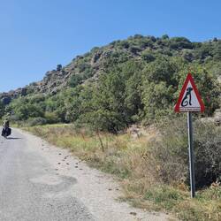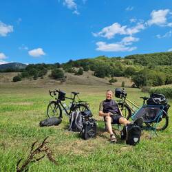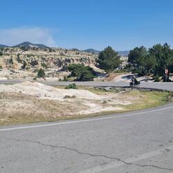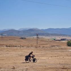 Der Wecker klingelt zwar um sieben, die Schlafsäcke verlassen wir aber dann doch erst gegen acht Uhr. Geschlafen haben wir sehr gut, besonders die Stille an diesem Ort hat dazu beigetragen. Zu Beginn der heutigen Etappe ernten wir die Belohnung dafür, dass wir gestern noch bis auf den Gipfel gefahren sind - es geht bergab! So kommen wir flott voran, teilweise auf kleinen Nebenstraßen, ab und zu auf schotterigem Untergrund und zu unserem Leidwesen lassen sich auch Abschnitte auf einer Schnellstraße nicht vermeiden. Eine Besonderheit erleben wir auf einer Strecke von ca. drei Kilometern. Unglaublich viele Hunde tummeln sich in den Wiesen, Hängen und Sträuchern rechts und links der Straße. An der Straße weist sogar ein Schild auf kreuzende Hunde und Katzen hin. Auffällig ist, dass die Tiere gar nicht so ungepflegt oder gar abgemagert aussehen wie es sonst bei den Straßenhunden oft der Fall ist. Was es aber mit dieser "Hundestraße" auf sich hat, hat sich uns nicht erschlossen. Wir nähern uns bald der Stadt Kütaya, wo wir einerseits einkaufen und andererseits einen neuerlichen Versuch unternehmen wollen, doch noch Gaskartuschen oder einen neuen Kocher zu ergattern. So langsam fährt täglich die Sorge mit, dass unsere Camping-Küche demnächst kalt bleiben muss. Die Suche in einem riesigen Einkaufszentrum, einem empfohlenen Baumarkt sowie einem größeren Supermarkt kostet uns am Ende zwei Stunden Zeit, bleibt aber leider erfolglos. Immerhin konnten wir unseren Einkauf erledigen, so dass wir u.a. auch für unsere Pause, die wir unmittelbar nach Verlassen der Stadt einlegen, gut ausgestattet sind. Bei gefühlt deutlich wärmeren Temperaturen als in den letzten Tagen fahren wir noch weitere 30 Kilometer durch die Sonne, wobei der Weg zum Ende des Tages dann doch nochmal bergauf führt. Es kommt die gleiche Taktik zur Anwendung wie schon am gestrigen Tag. Das heißt, wir fahren bis zum höchsten Punkt, um dort zu campieren und die morgige Etappe mit einer Abfahrt beginnen zu können. Gesagt getan, wir radeln hinauf auf etwa 1200m und lassen uns am erstbesten Ort nieder, der uns für die Nacht geeignet scheint. Einzig lästig sind die Fliegen, die es hier darauf abgesehen haben, uns den letzten Nerv zu rauben. Unser obligatorisches "Abend-Gemüse" genießen wir trotzdem und mit Einbruch der Dunkelheit verschwinden dann irgendwann sogar die Fliegen.Læs mere
