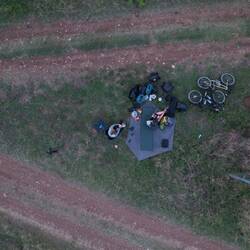 Um halb sieben klingelt der Wecker, es ist kalt draußen. Heiko hat schon in der Nacht ordentlich gefroren und mehrmals sein "Setup" den Temperaturen angepasst. Es wird Zeit, dass die Sonne aufgeht und uns wärmt. Da nun endlich unsere Kocher-Sorge behoben ist, gibt es heute nicht nur einen, sondern zwei TassenTee bzw. Kaffee zum Frühstück. Drei Hunde beäugen neugierig unser Zelt, bald darauf zieht etwas oberhalb der Picknickfläche auf einem Waldweg der dazugehörige Hirte mit seiner Ziegenherde vorbei. Es ist ein toller Morgen zum Radeln, die Sonne scheint und es weht ein leichter, frischer Wind. Unsere Route führt weiterhin durch welliges Terrain, nach einer langen Abfahrt zu Beginn folgt direkt wieder ein schweißtreibender Anstieg. Die Landschaft ist wunderschön, während unserer Pause auf einer Anhöhe genießen wir das herrliche Panorama sowie Chips und Kekse, die wir zuvor in einem kleinen Dorf erworben haben. Die Gegend wird immer karger, zudem fühlen wir uns wie von einer Staubschicht überzogen. Meist werden wir von den Menschen ziemlich verwundert angesehen, so auch in der nächsten Ortschaft, die wir durchfahren. Immer wieder werden die gleichen Fragen gestellt: Wo kommt ihr her, wo wollt ihr hin, habt ihr kein Auto? Ein Mann namens Faruk lädt uns zu einer Cola ein und wird nicht müde, den Leuten auf der Straße zuzurufen, dass er Gäste aus Deutschland hat, die mit dem Fahhrad nach Antalya fahren. Um nicht ein weiteres Mal aufgehalten zu werden, verzichten wir auf einen Einkauf und verlassen zügig den Ort. Die Zeit ist bereits recht fortgeschritten und nach unseren bisherigen Erfahrungen ist es sinnvoll, frühzeitig vor Einbruch der Dunkelheit mit der Suche nach einem Schlafplatz zu beginnen. Tatsächlich gestaltet es sich auch heute wieder nicht einfach. Mal wieder haben auf einen Panorama-Platz gehofft, nachdem wir noch einige Höhenmeter bergauf geradelt sind. Wenn es aber auf der einen Seite des Weges steil bergab und an der anderen steil bergauf geht, wird das Aufstellen eines Zeltes schwierig. Und an den Stellen, wo es potentiell möglich wäre, lässt der Untergrund es nicht zu. So radeln wir also weiter und bekommen es noch einmal mit einem biestigen Anstieg zu tun. Kurz danach, hinter einem winzigen Dorf, entdeckt Heiko eine Fläche abseits der Straße neben einem kleinen Friedhof. Reichlich k.o. vom Tag lassen wir uns hier nieder, das Zelt wollen wir wie immer erst mit Einbruch der Dunkelheit aufstellen. Der Ausblick im Licht der untergehenden Sonne ist toll, was Heiko für einen kurzen Drohnenflug nutzt, bevor es für die müden Radler Nudeln mit einer Büchse Bohnen in Tomatensauce gibt. Damit könnte der Tag dann auch beschlossen werden - eigentlich...Læs mere