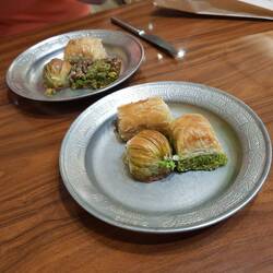 Ohne Ziel machen wir uns auf den Weg, wollen uns einfach von den ersten Eindrücken treiben lassen. Es zieht uns zunächst ans Wasser, wo wir an der Uferpromenade entlangschlendern, die Aussicht im Abendlicht genießen und den zahlreichen Anglern und mindestens genauso zahlreichen Katzen bei ihrem Treiben zuschauen - ein erstes Eintauchen in das Lebensgefühl am Bosporus. Es wird bereits dunkel, als wir vom Wasser aus in Richtung Altstadt weiterziehen, das schmälert aber die Begeisterung des ersten Rundumblicks im Sultanahmet Parkı in keiner Weise. Schwer beeindruckt sind wir beim Anblick des Wahrzeichens der Stadt, der Ayasofya Camii oder auch Hagia Sophia. Bei abendlich milden Temperaturen saugen wir die Atmosphäre auf, während wir auf einer Bank an dem in wechselnden Farben beleuchten Brunnen zwischen einem mit der Hagia Sophia wichtigsten Kulturdenkmäler der Welt der mit der Blauen Moschee (Sultan Ahmet Camii), der größten und bekanntesten Sultansmoschee, sitzen. Auf unserem weiteren Streifzug durch die Straßen und Gassen stellen wir fest, dass wir im Schlaraffenland angekommen sind. Speziell die Auslagen der vielen Läden mit türkischen Süßwaren lassen einem das Wasser im Mund zusammenlaufen, dazu die unterschiedlichen Gerüche von gegrillten Maronen, Dönerspießen, Tee etc., die einem aus allen Richtungen in die Nase strömen. Um auch einen geschmacklichen Eindruck zu bekommen, kehren wir in bzw. vor einem Restaurant ein und schlagen und den Bauch mit Iskender Kebab, Künüfe, Baklava und natürlich türkischem Tee voll. Parallel läuft passend der Fernseher und es wird das Champions League Spiel zwischen Beşiktaş JK und Borussia Dortmund gezeigt. Es ist schon spät, als wir irgendwann zurück ins Hotel gehen und uns schon jetzt auf die kommenden Tage freuen.Læs mere