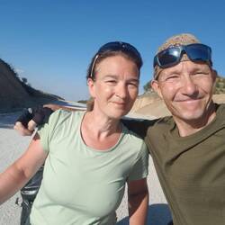 Am heutigen Morgen erwartet uns zum Frühstück ein Buffet, was seit Beginn der Corona-Pandemie eher Seltenheitswert hat. Als wir anschließend einkaufen gehen bereitet uns die Tatsache etwas Sorge, dass in sämtlichen Läden vor Ort keine Gaskartuschen für unseren Campingkocher erhältlich sind. Es bleibt also unklar, wie wir am heutigen Abend Gemüse, Nudeln und Teebeutel in einen verzehrfähigen Zustand bekommen. Zu dumm, dass wir uns nicht mit den notwendigen Dingen eingedeckt haben, als wir noch in İstanbul waren. Nun bleibt zu hoffen, dass wir unterwegs noch fündig werden. Als wir zurück im Hotelzimmer unseren Hausstand wieder in den Packtaschen verstaut haben, müssen wir leider feststellen, dass es inzwischen zu regnen angefangen hat. Da es sich auch nicht nur um Nieselregen handelt, vertreiben wir uns noch eine Weile die Zeit auf der Terrasse vor dem Hotel. Tatsächlich reißt am (sehr) späten Vormittag der Himmel auf und wir verlassen den Ort Yalova bei Sonnenschein. An jedem Geschäft halten wir in der Hoffnung an, noch Gaskartuschen zu bekommen, haben jedoch keinen Erfolg. Schon bald lassen wir den Ort hinter uns und es wird ruhiger und landschaftlich schöner. Gleichzeitig wird es aber auch schweißtreibender: Auf den ersten 20km der heutigen Etappe sind 600 Höhenmeter zu bewältigen und die Anstiege sind teilweise biestig steil. In einem kleinen Ort pausieren wir zwischendurch vor einer Moschee und genießen kalte Cola und Sigara Börek. Nach einer steilen Abfahrt erreichen wir schließlich den Ort Orhangazi, der größer und quirliger ist als vermutet. Es keimt direkt wieder die Hoffnung in uns auf, hier vielleicht doch noch die ersehnten Kartuschen zu bekommen. Wir fragen in diversen Geschäften, werden von einem Laden in den nächsten geschickt, ohne Erfolg. Schließlich wird Claudia von einem jungen Mann zu einem kleinen Geschäft geführt, wo zwar keine einzelnen Kartuschen erhältlich sind, wir aber einen kompletten Kocher kaufen können. Juhuuu, wir werden unser Gemüse nicht als Rohkost verzehren müssen und einen Tee wird es auch geben. Nach Verlassen der Stadt führt unser Weg zum İznik Gölü ("İznik-See"), dem fünftgrößten See der Türkei und dem größten in der Marmararegion. Die Dunkelheit naht und so fragt Heiko einen älteren Herrn, der an einem Gebäude, dass vielleicht einmal eine Gaststätte werden möchte, den Rasen mäht, ob wir auf dem Grundstück unser Zelt aufschlagen dürfen. Er und zwei weitere Herren heißen uns willkommen, machen uns vor ihrer Abfahrt noch das Licht am Gebäude an und stellen uns Tisch und Stühle für unser Abendessen zur Verfügung. Um acht Uhr ist es bereits stockfinster, so dass wir uns recht bald im Zelt auf unsere Isomatten begeben.Læs mere