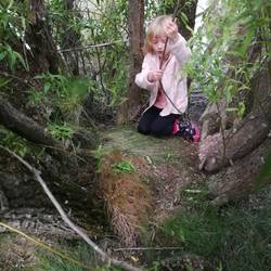Der Platz ist diesmal an einem kleinem See "Lake Poaka", und es ist nichts weiter vor Ort außer zwei sporadische Toilettenhäuschen - reicht. Es war allerdings erst nachmittags um 15 Uhr. Was wollen wir hier die ganze Zeit machen? Hier ist nichts - außer Natur. Ich war mir noch nicht ganz so schlüssig zu bleiben wie Evelin. Die pirschte schon in den ersten Baumgeflechten direkt am See rum. "Wollen wir wirklich hier bleiben? Wir finden bestimmt noch was tolleres in der Gegend", sagte ich. Aber Evi, die kein Bock aufs weiterfahren hatte, erstrecht nicht mit Mama's Unschlüssigkeit, brachte es mit ihrer genervten Antwort auf den Punkt: "Hier ist's wunderschön! Das reicht doch!"